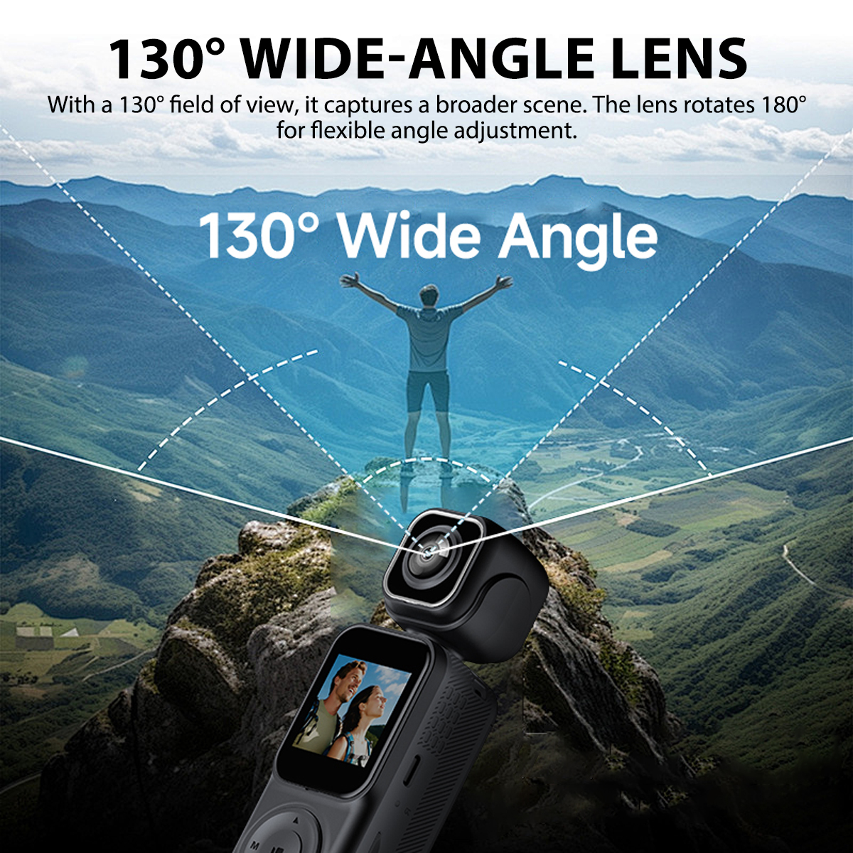 3. 130 wide angle: The lens has a viewing angle of 130, and the shooting range is wider.The lens can rotate 180, and the shooting angle can be adjusted at will.