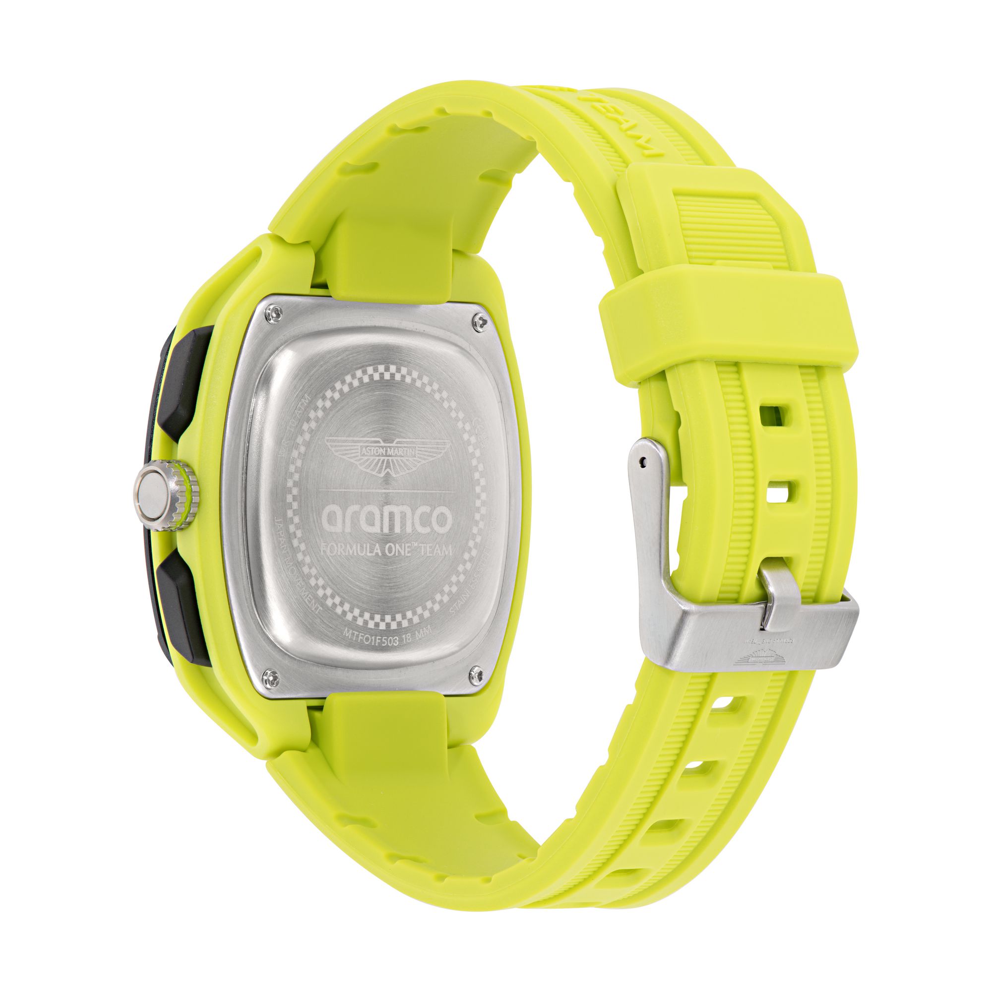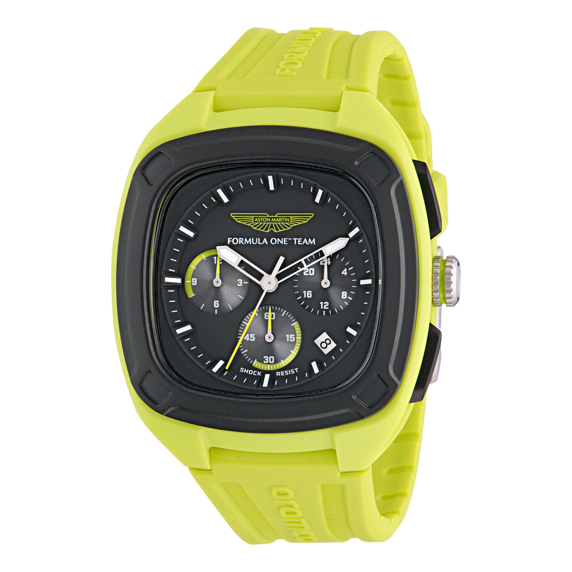 | Infos : | Un look saisissant avec un caractère haute performance. Ce modèle OVR est doté d'un boîtier en plastique vert citron de 44 mm, d'un cadran multifonction noir et d'un bracelet en silicone assorti. L'anneau supérieur noir apporte de la structure, tandis que la couche de rouge à lèvres vert podium reflète le style dynamique d'Aston Martin sous tous les angles. |