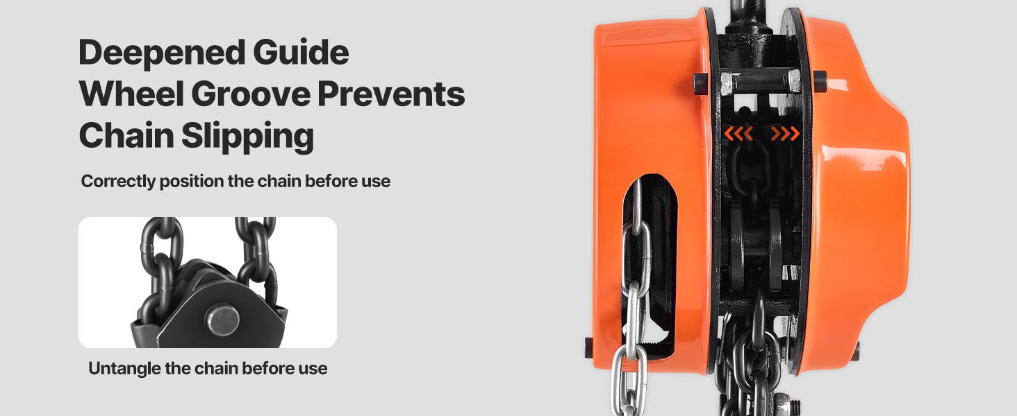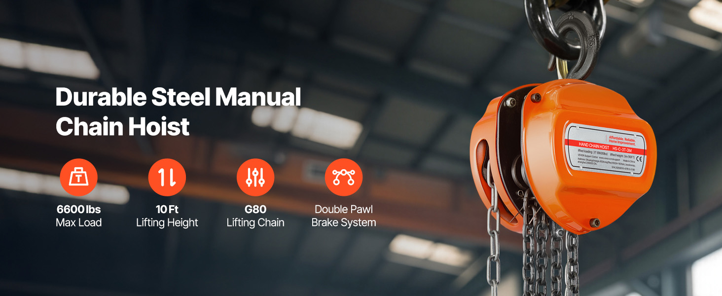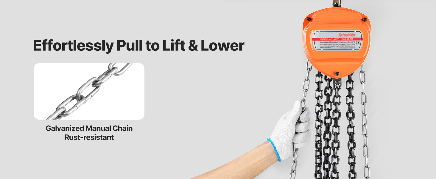 Accurate Hoisting & Safety Brake: The dual-pawl braking mechanism guarantees secure and controlled lifting. This chain hoist maintains your load at the required height, preventing accidental slips and enhancing safety.