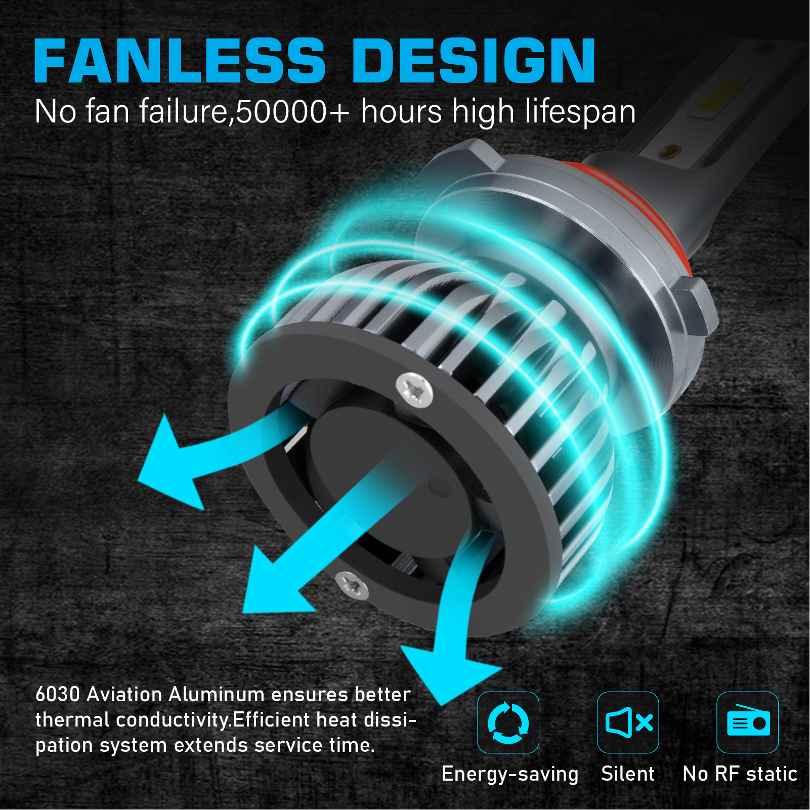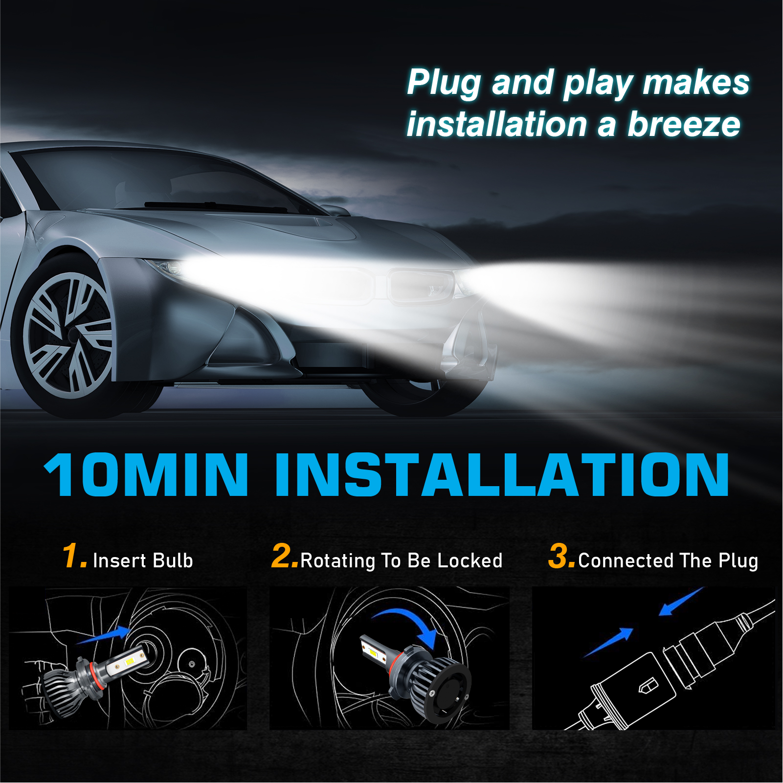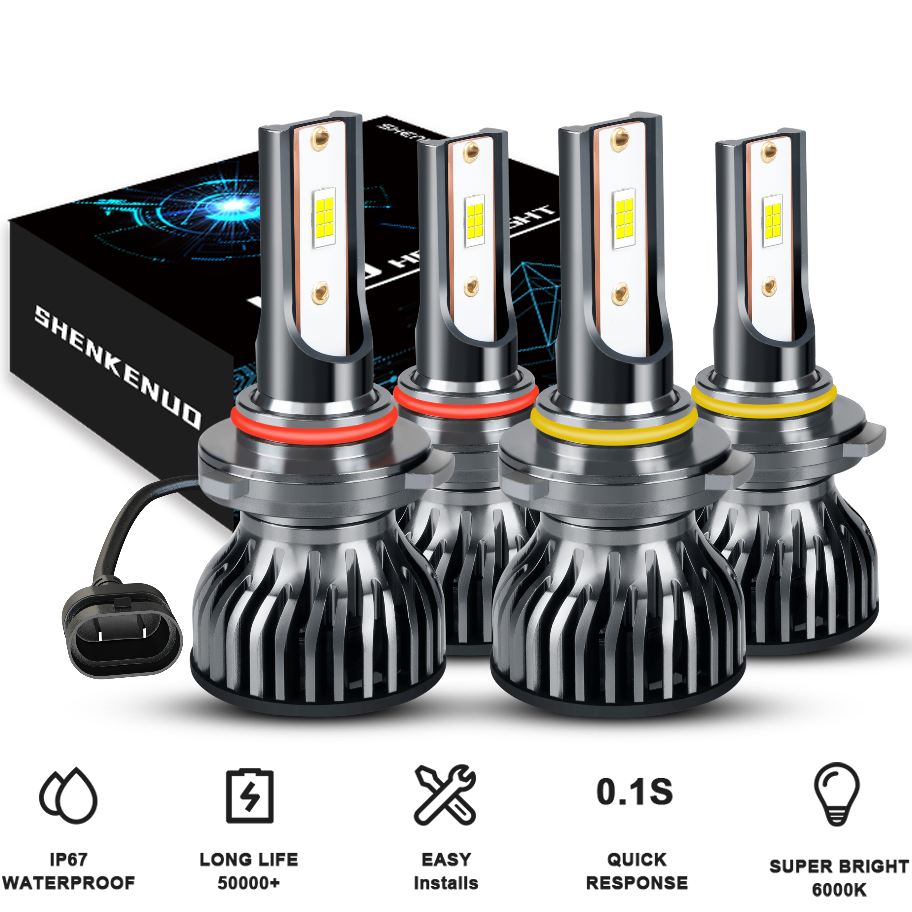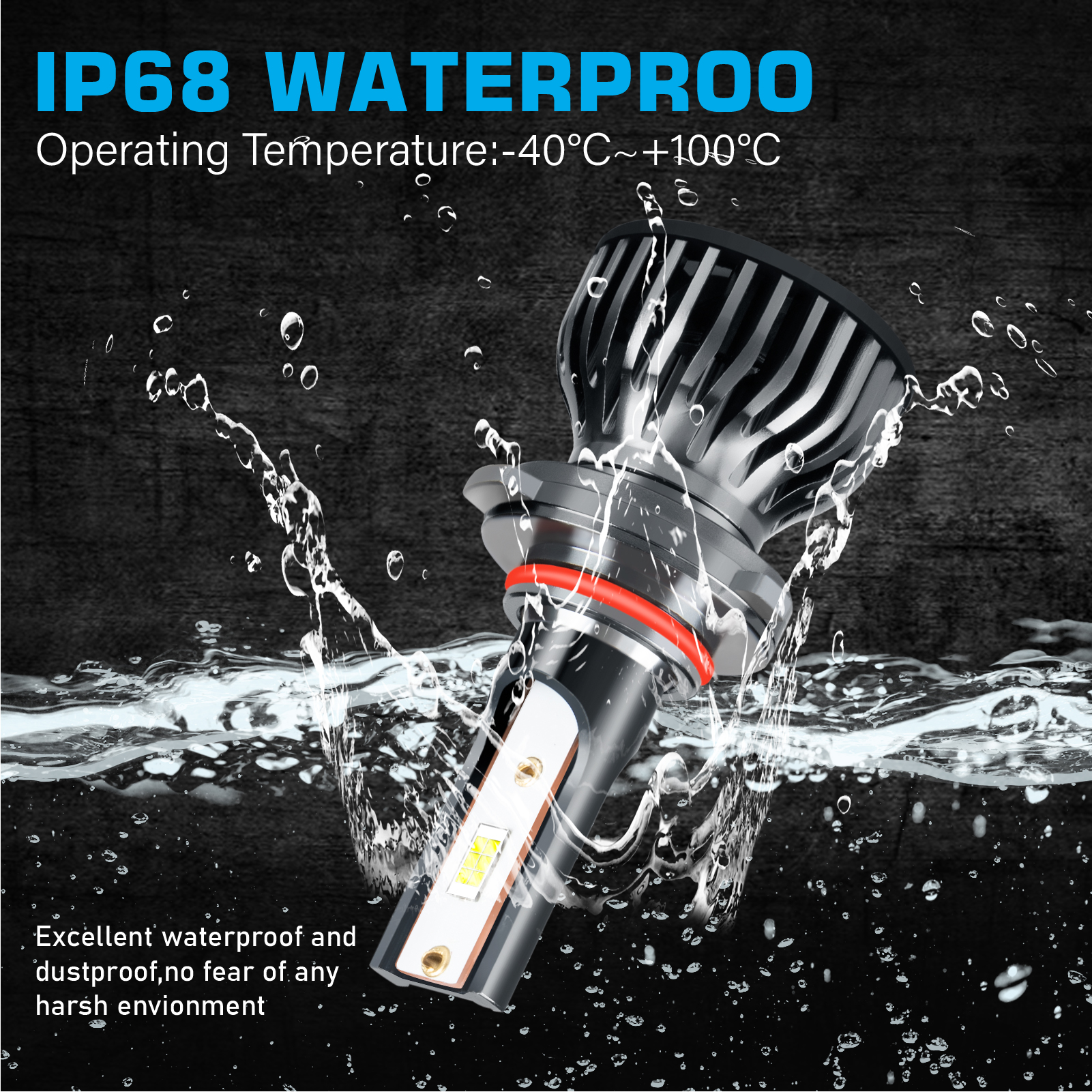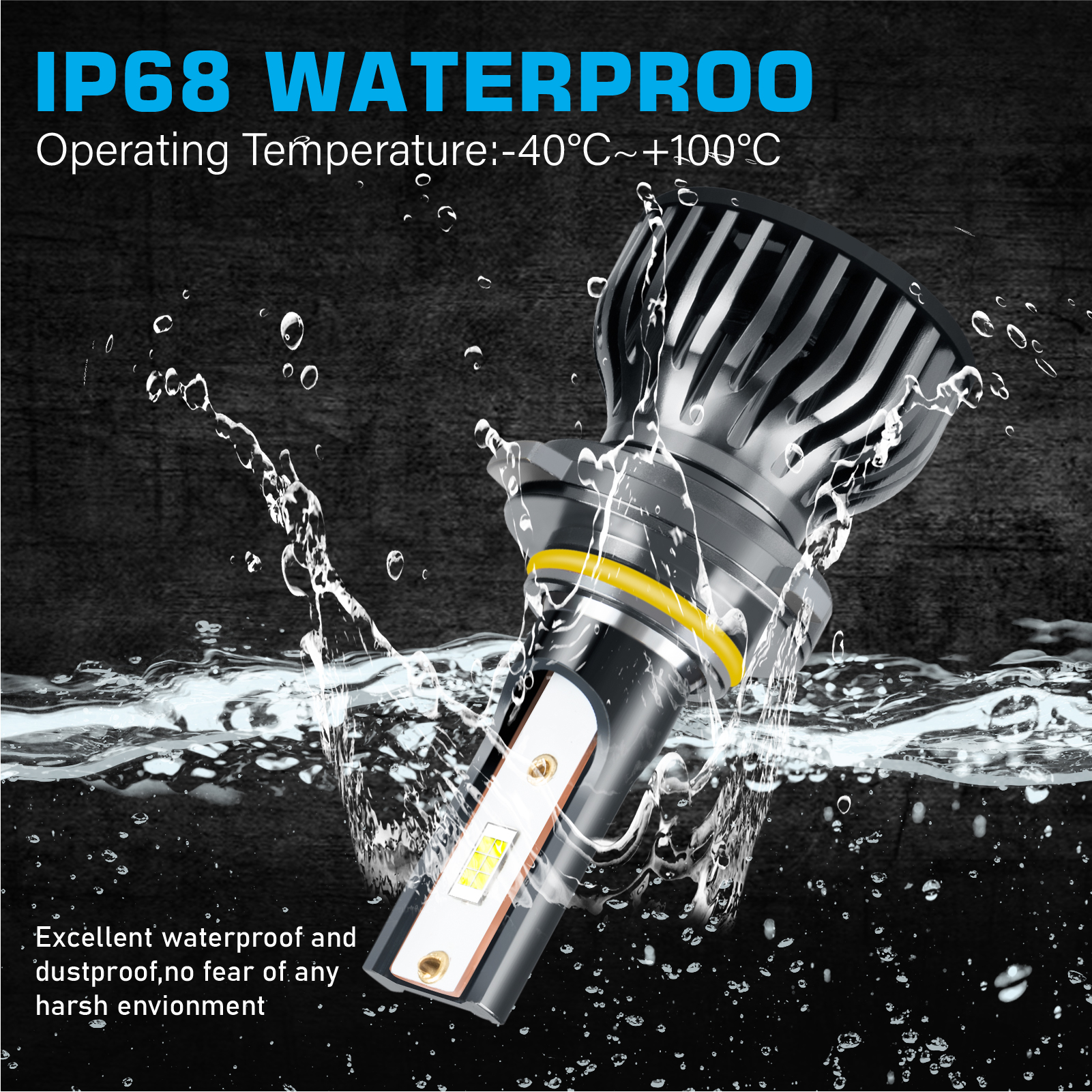 【Turbofan and Waterproof Design】The LED driver was built into the bulbs. The smallest heat system in the market, including cooling fan and cooling aluminum parts. 12,000 RPM high speed turbo fan will help the heat dissipation. In this way can ensure the bulbs lifespan last more than 50,000 hours. Our led headlight kit design IP68 waterproof. It can work underwater! Rainproof , it also shockproof. Buy it confidence.