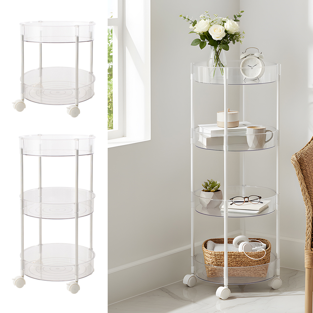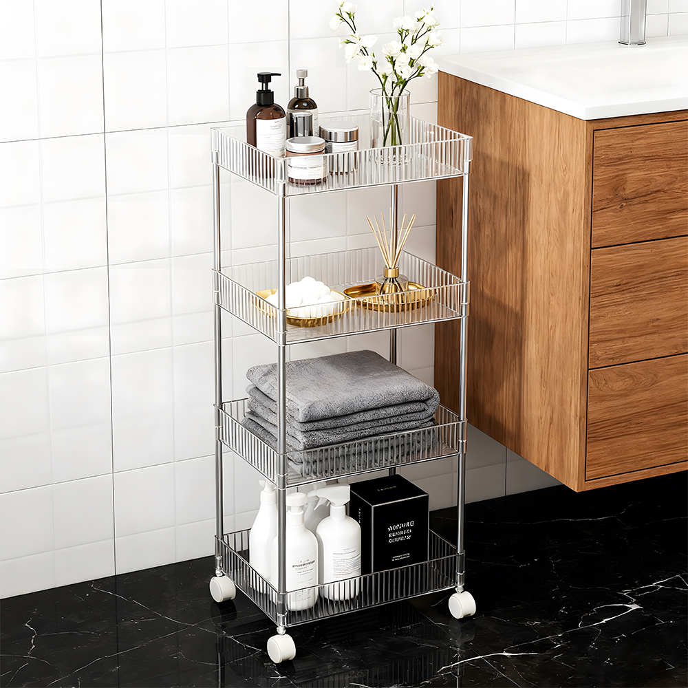 Constructed with durable transparent plastic shelves and sturdy chrome-plated metal frames, this cart marries durability with modern charm: the see-through shelves let you quickly locate stored items, while the rust-resistant metal structure ensures long-term use.