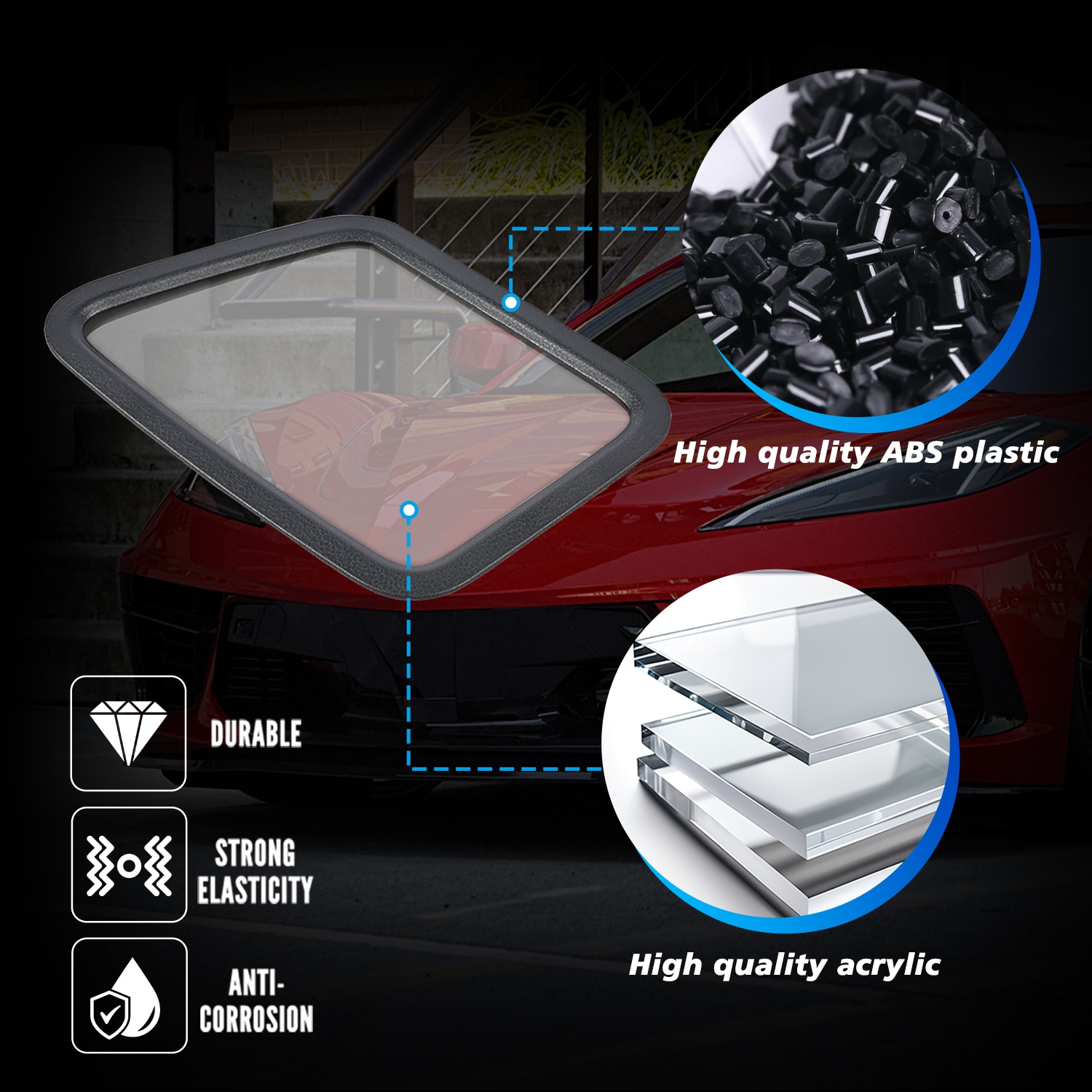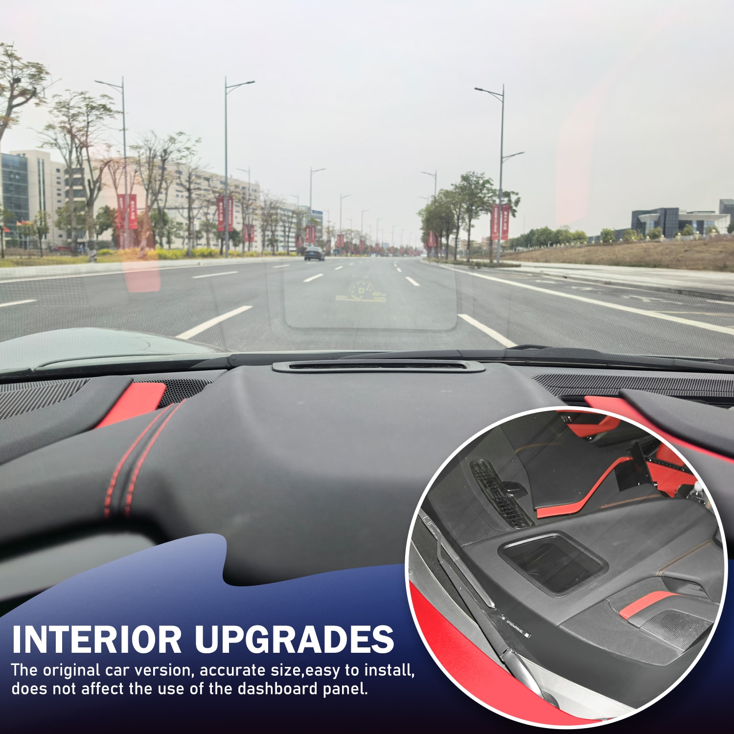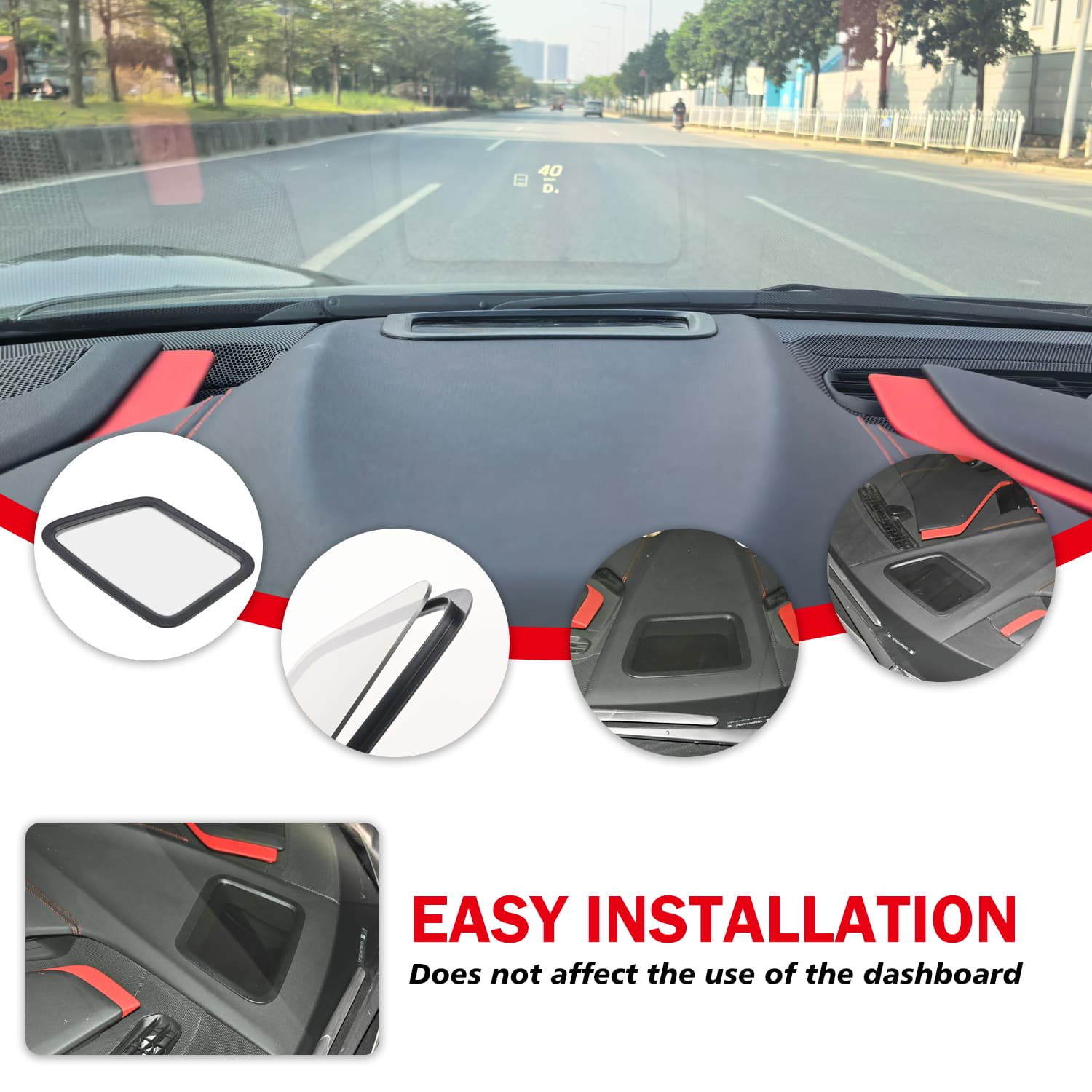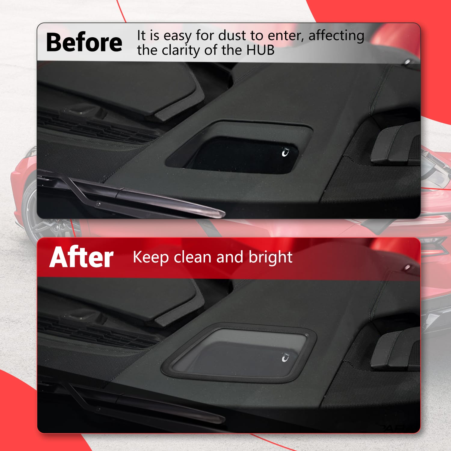 Fitmnet: Compatible with 2020 and later model year for Chevrolet for Corvette C8 Stingray Z51 Hardtop Coupe, also fits 2020 and later model year for Chevrolet for Corvette C8 Convertible/HTC, 2023 and later model year for Chevrolet for Corvette C8 Z06, and 2024 and later model year E-Ray models. Product Description: This shield effectively blocks dust and debris from entering the head-up display, ensuring real-time data from the digital screen is clearly projected onto the front windshield. Drivers can access vehicle information directly through the windshield without looking down at the display. This performance-oriented HUD cover enhances your Corvette's aesthetic appeal. Premium trim accents infuse the HUD area with track-inspired design, instantly elevating interior visual appeal. The streamlined surface complements the lightweight construction, reinforcing the C8 cockpit's luxurious feel while highlighting its performance heritage. The HUD display cover features an ABS plastic frame and acrylic transparent panel, offering a lightweight yet durable decorative piece that enhances the dashboard with premium racing aesthetics. The black plastic frame seamlessly complements interior color schemes for a sleek, sophisticated look. Crafted from high-quality acrylic, the panel delivers exceptional clarity and scratch resistance while ensuring a perfect fit over the instrument panel area. Its contours perfectly align with the cabin space, delivering factory-level precision and elevating the overall quality feel. This HUD display cover is specifically designed to elevate the interior quality of the C8. It is not a replacement part but a rigid carbon fiber overlay that directly covers the HUD decorative pad on the dashboard. Installation is quick and easy using the included adhesive tape, requiring no professional assistance. The UV-resistant coating effectively protects against sun damage and fading, while the scratch-resistant surface ensures the trim maintains its pristine shine during daily use. This dashboard upper HUD cover trim features a simple, hassle-free installation process. It uses automotive-grade adhesive to securely attach to your dashboard, ensuring a long-lasting bond with no need for drilling or permanent modifications. The easy installation process makes it a quick upgrade to enhance your Corvette’s interior.