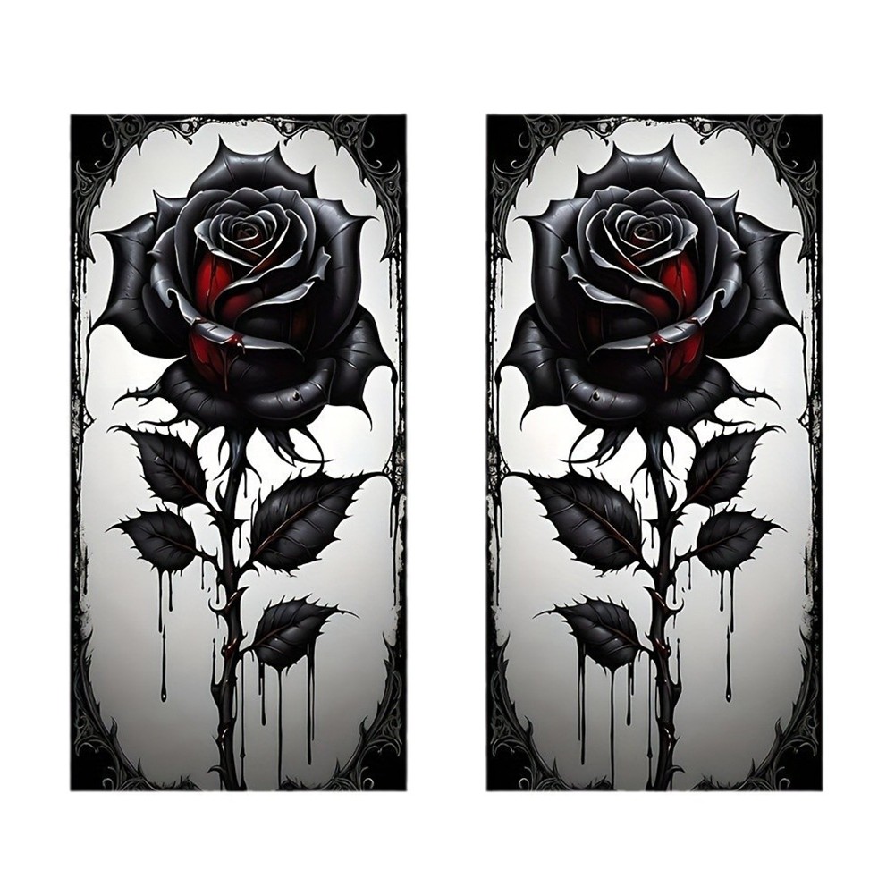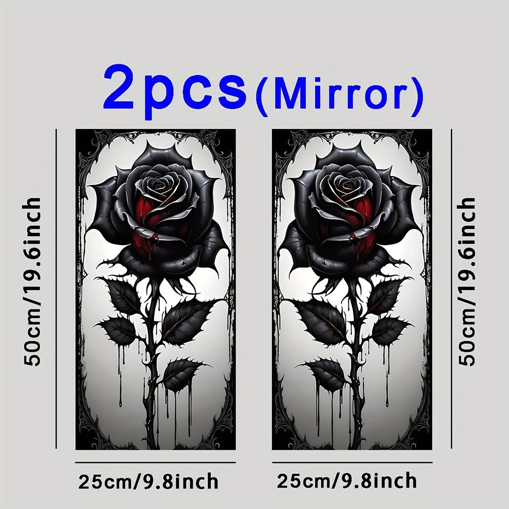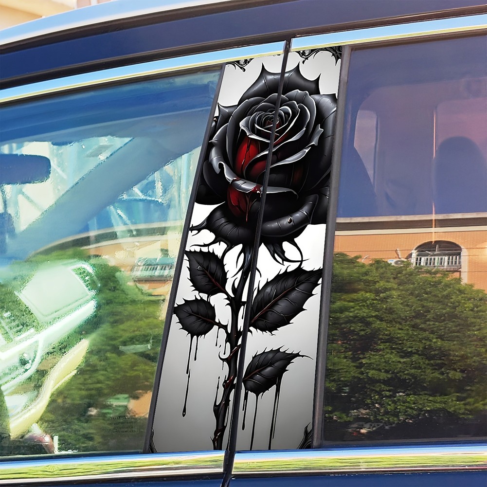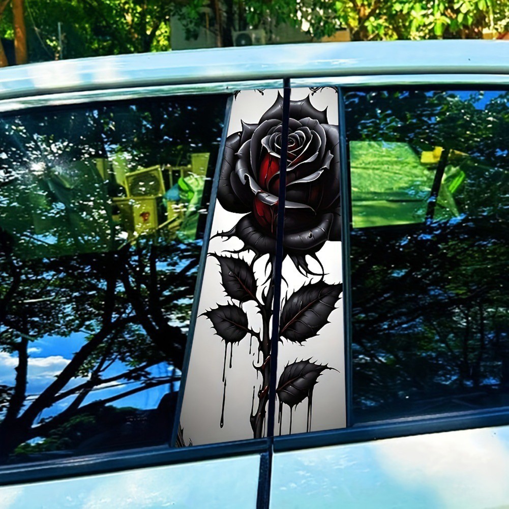 Waterproof Car Door Pillar Sticker Black Rose B Pillar Protective Film 2 Pieces