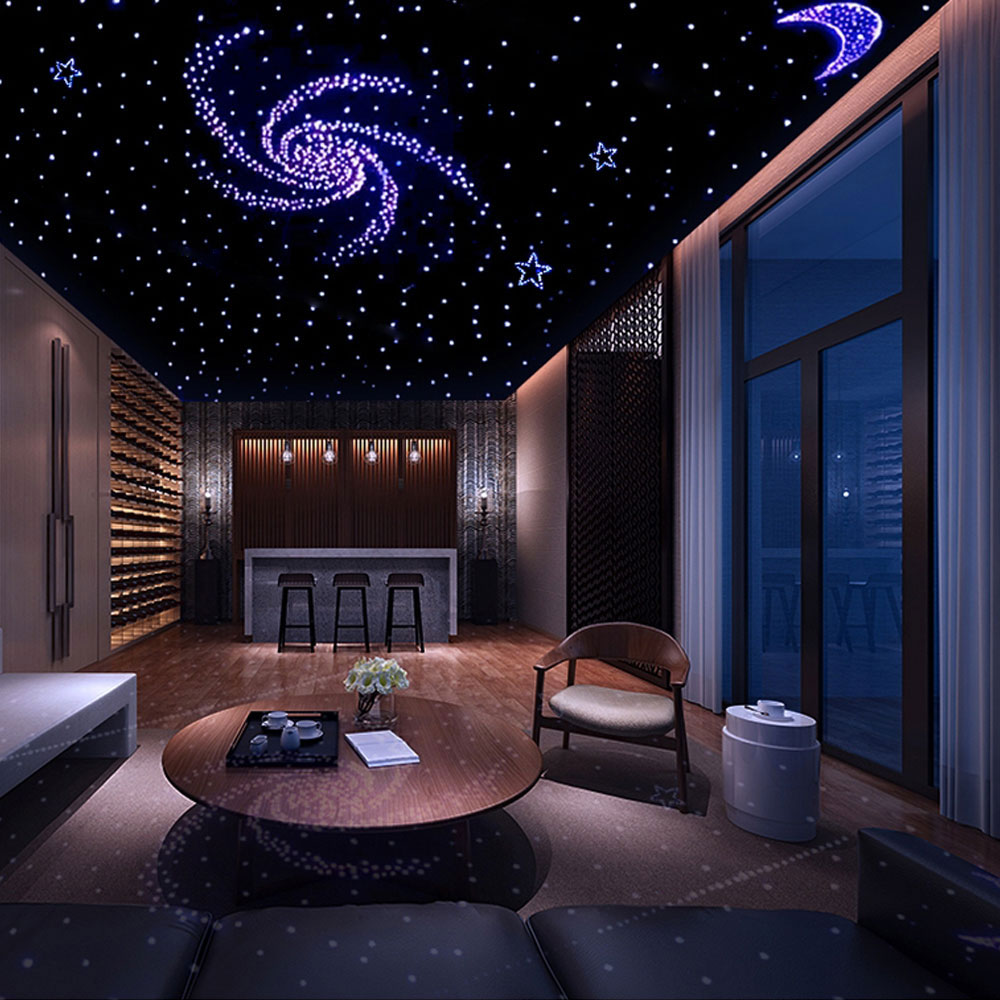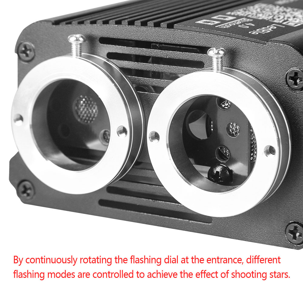 "Eine Maschine für zwei Zwecke" wird in verschiedenen Arten von faseroptischen Lampen verwendet. Eine Maschine kann den Effekt von "Sky Star+Meteor" erzielen. Der Strömungsmodus/die Geschwindigkeit der 10LED Meteor kann manuell eingestellt werden.