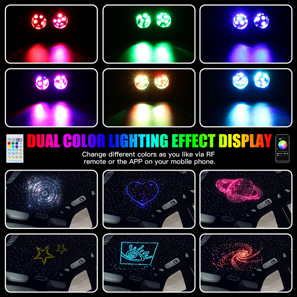 "Die aktualisierte Bluetooth APP" Glasfaserlampe wird über ein Mobiltelefon (Android oder iPhone) gesteuert, laden Sie einfach die App herunter und schalten Sie Bluetooth ein. Sie müssen sich keine Sorgen machen, die Fernbedienung zu verlieren oder zu beschädigen. Es gibt mehrere Modi zur Auswahl. Ideal für Heimkinos, Autos, Häuser, Zimmer, Hotels, Restaurants, Unterhaltung, KTV, etc.
