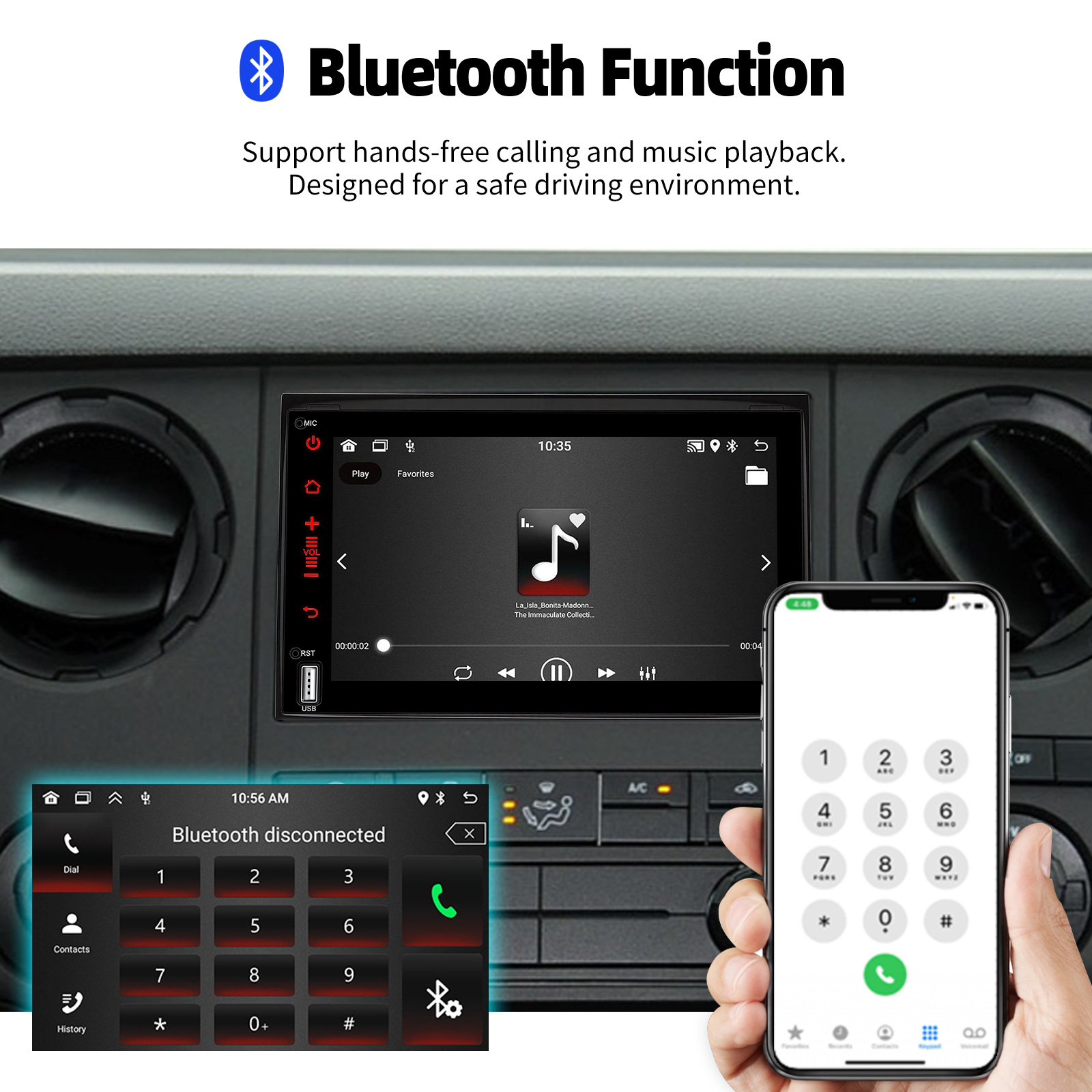 FM radio & Bluetooth & EQ Setting: Supports Bluetooth 4.1, with built-in microphone and speaker so you can make hands-free calls while driving. Support access to phone book, music playback interface, etc.. You can store 18 FM radio stations. Hifi mode setting, supports 36-band EQ adjustment, which can be adjusted according to your personal preference. 4 x 45W amplifiers, surround sound and subwoofer output.