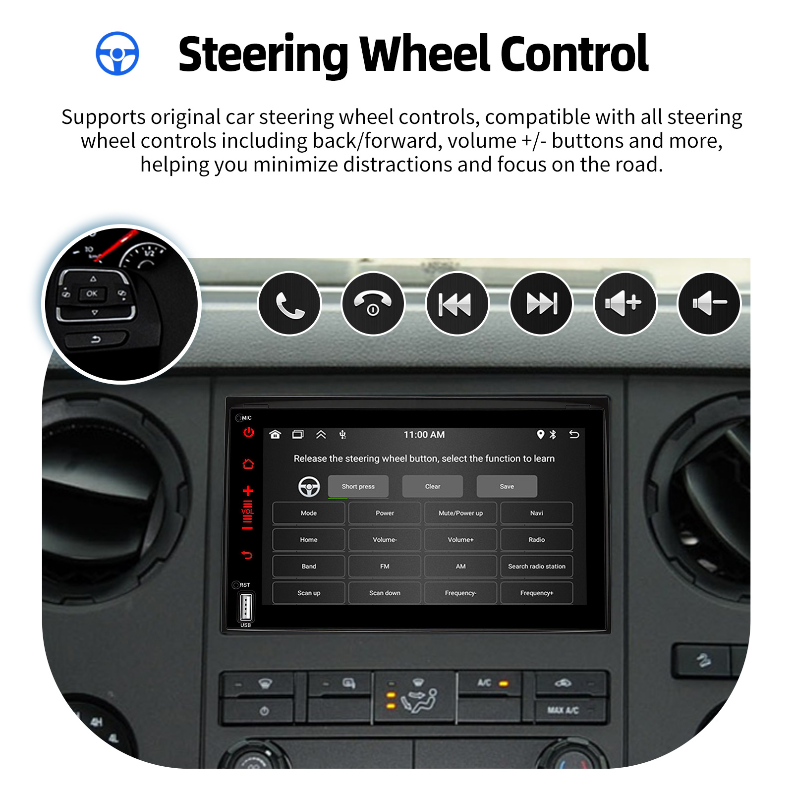 AHD Rear View Camera Input & SWC: After connecting to the rear view camera. The radio will automatically display the reversing image as soon as YOU engage reverse gear. Make your daily reversing safer. Supports original car steering wheel control (if your car doesn't support canbus, & YOU learn the steering wheel buttons) to make driving more convenient and safer.