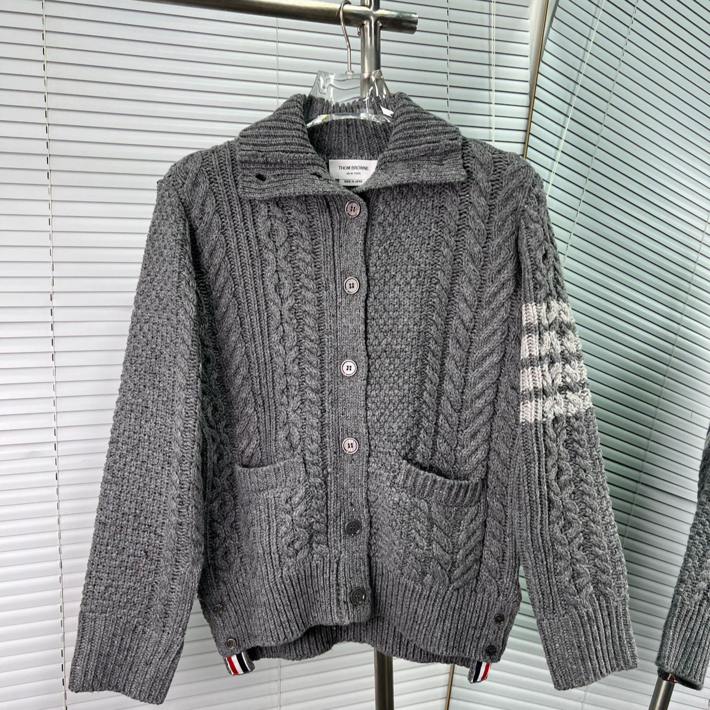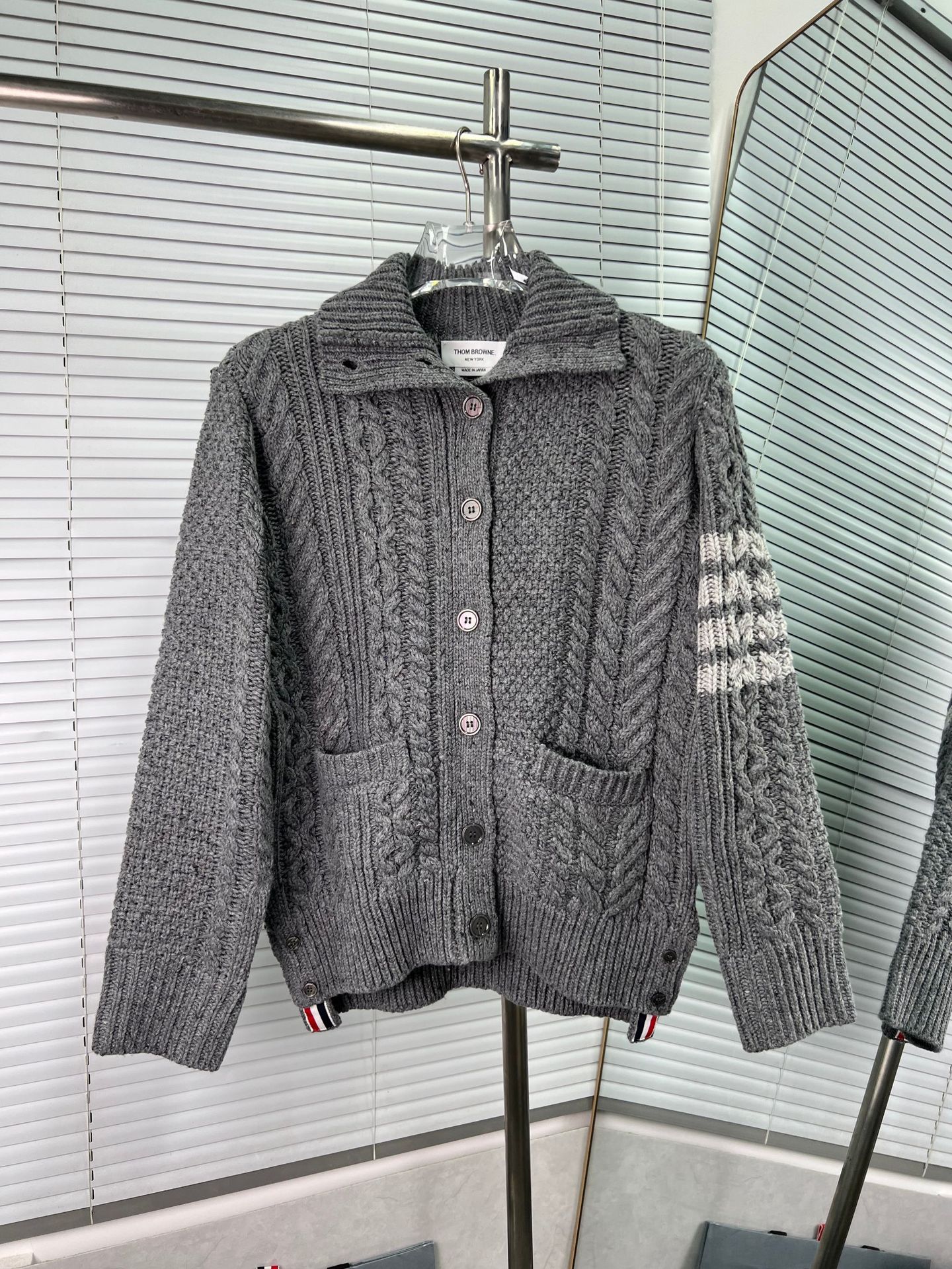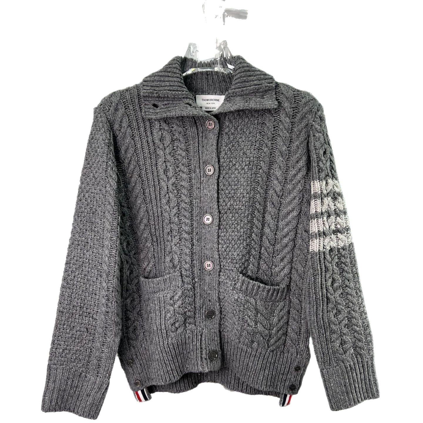 Thom Browne Womens New Spring Autumn Twisted Lapel Wool Knitted Cardigan Coat