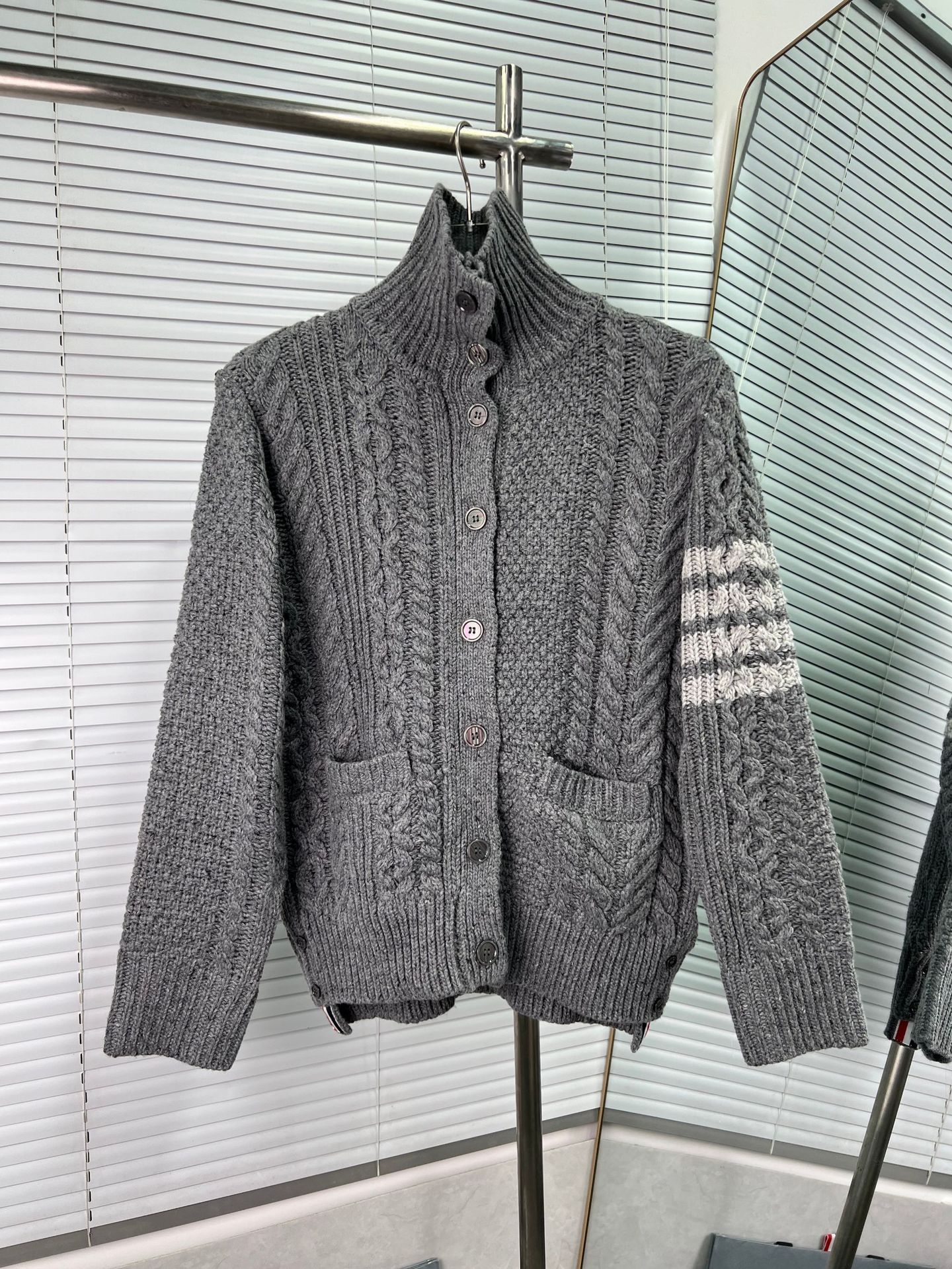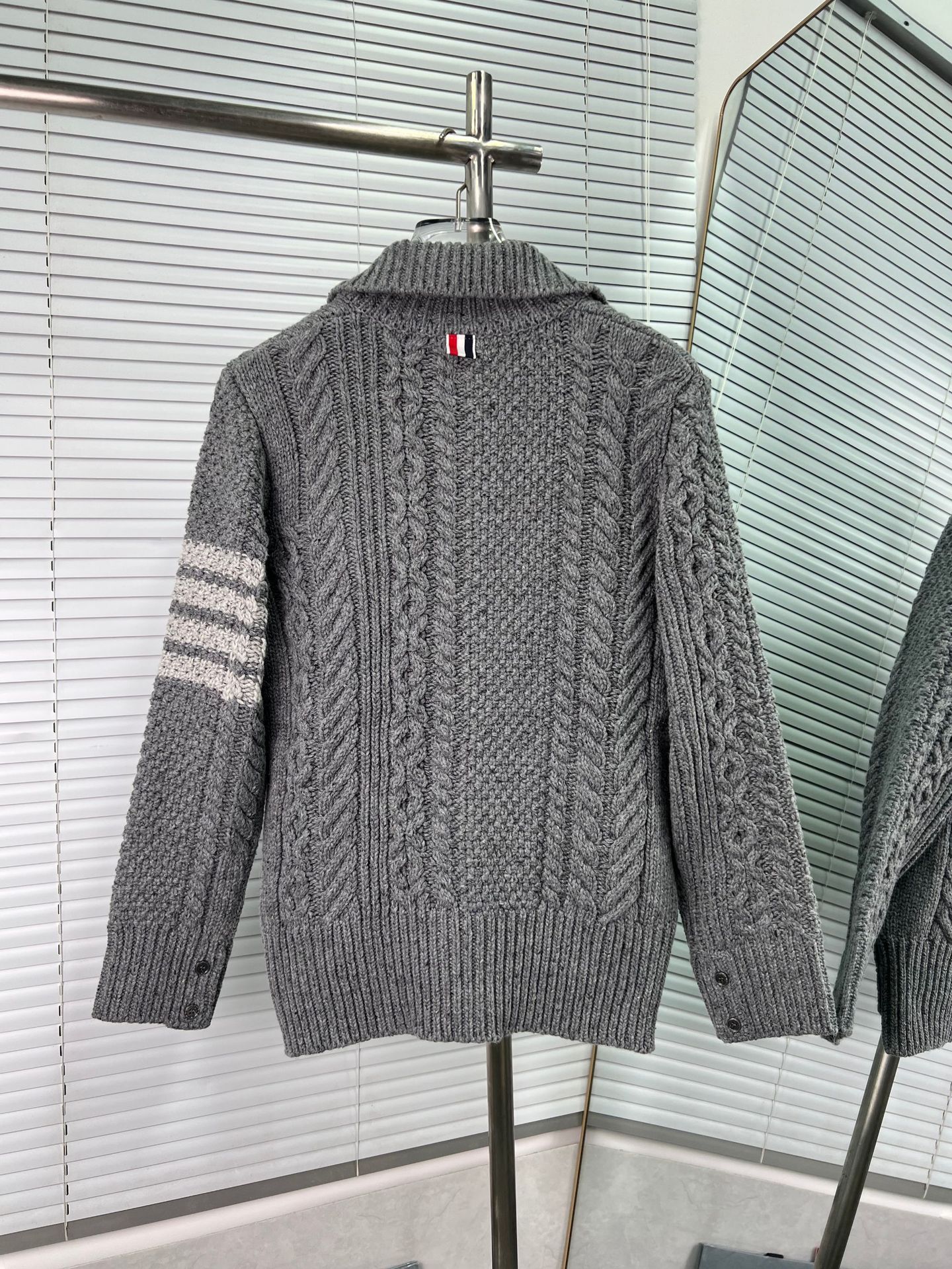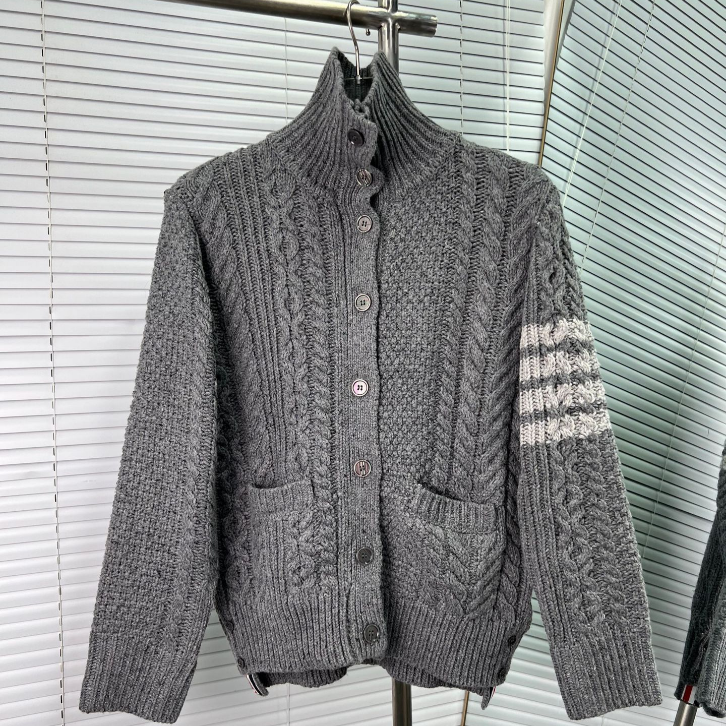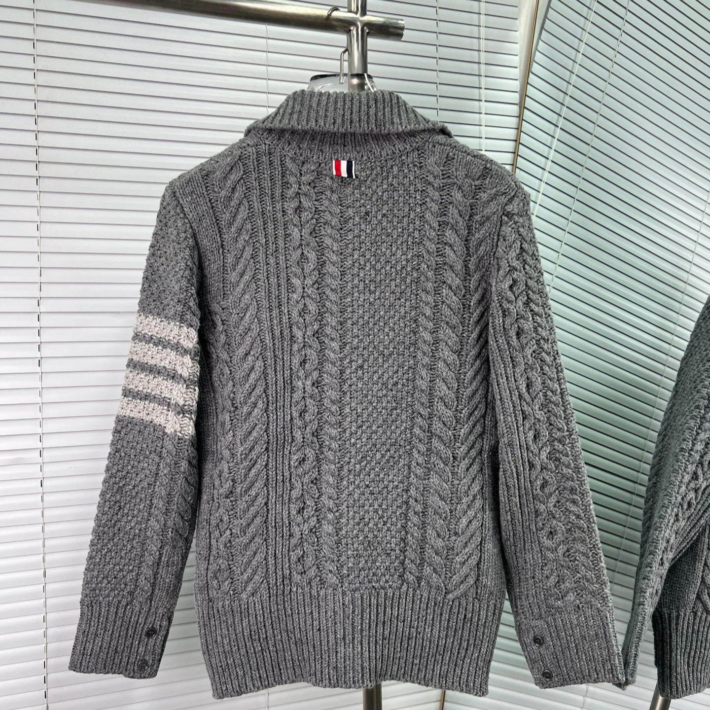 Thom Browne Womens New Spring Autumn Twisted Lapel Wool Knitted Cardigan Coat