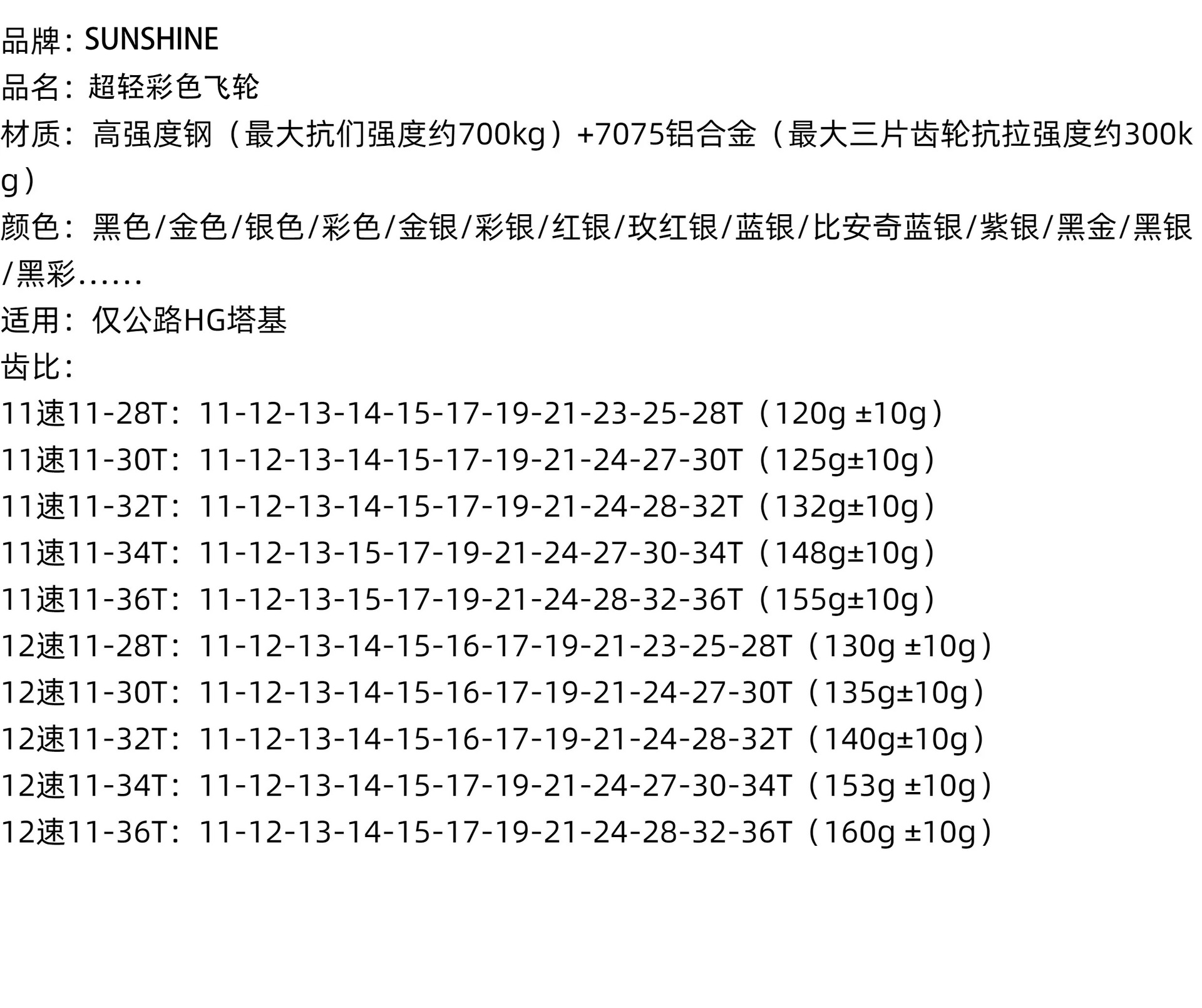 SUNSHINE ultralight Road Bike Cassette HGR Flywheel 11 12 Speed 11-28/32/34/36T fit for Shimano Road HG freehub