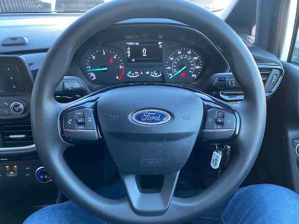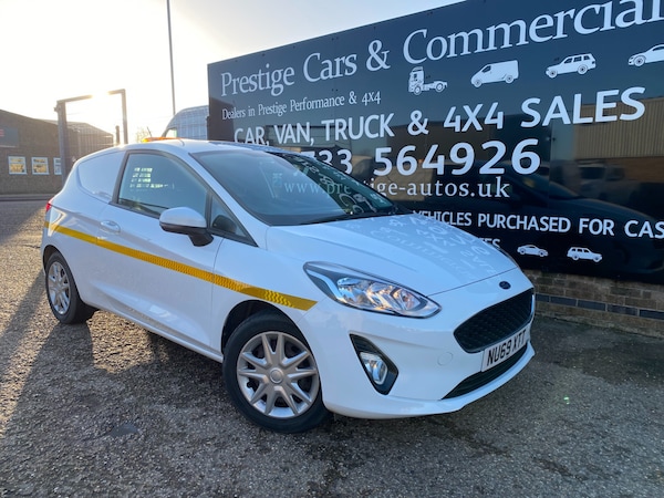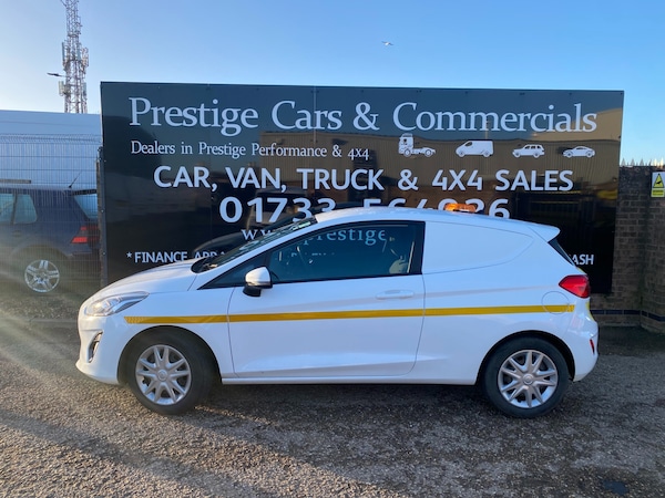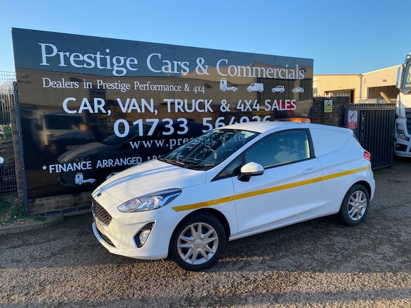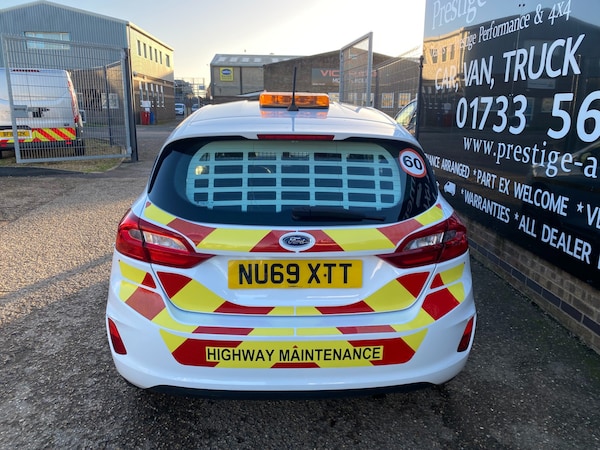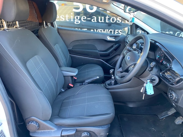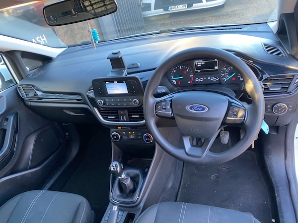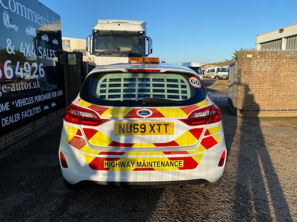 2019 69 REG FORD FIESTA 1.5 TDCI 85PS SMALL SIZED VAN COVERED 71698 MILES BY 1 COUNCIL OWNER FROM NEW WITH FULL SERVICE HISTORY. SUPERBLY MAINTAINED AND LOOKER AFTER. BEEN SERVICED EVERY 6 MONTHS ALL ITS LIFE. HAD 10 SERVICES ALREADY. LAST SERVICED 1800 MILES AGO. CURRENT MOT VALID TILL 18/12/2026 WITH NO ADVISORIES, 6 MONTHS NATIONWIDE PARTS AND LABOUR WARRANTY. FIRST REGISTERED 19/12/2019. 1.5 TDCI 85 BHP ENGINE WITH 6 SPEED MANUAL GEARBOX. STANDARD VAN TAX BAND 12 MONTHS PRICED 345 POUNDS. SUPERB ECONOMY COMBINED OFFICIAL FIGURE OF 61 MPG. HI VISIBILITY safety PACKAGE REAR CHEVRONS, SIDE STRIPE, AMBER FLASHING ROOF LIGHT (CAN ALL BE REMOVED BY US IF REQUIRED) FULLY COLOUR CODED PAINTWORK. LOVELY CONDITION INSIDE OUT. ICE COLD AIR CON. AUTO LIGHTS+WIPERS. HEATED REAR SCREEN WITH SECURITY CAGE. DAB DIGITAL RADIO. USB AUX IN MUSIC MEDIA CONNECT. BLUETOOTH TELEPHONE AND AUDIO INTEGRATION. VOICE CONTROL COMMAND SYSTEM. ELEC WINDOWS. ELEC MIRRORS. REMOTE CENTRAL LOCKING. REAR LOAD AREA CAGED BULKHEAD. FULL SIZE SPARE WHEEL. 2X FULL REMOTE KEYS. DRIVES BEAUTIFULLY. SUPERB LITTLE VAN. 1635 KG GROSS VEHICLE WEIGHT. 1218KG UNLADEN WEIGHT. 417KG PAYLOAD CAPACITY. 750KG TRAILER PULL CAPACITY.