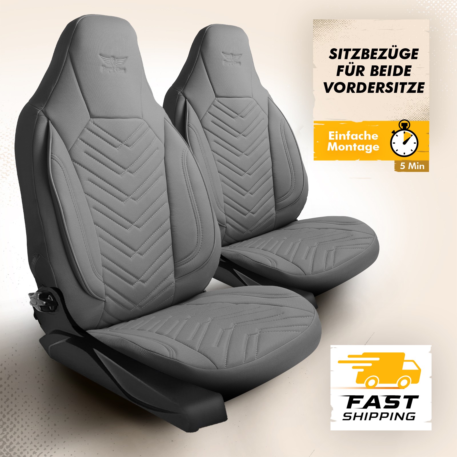 2x Einzelsitzbezüge (2-teilig, Fahrer & Beifahrer) + Montagematerial und Anleitung (ohne Armlehnenbezüge)