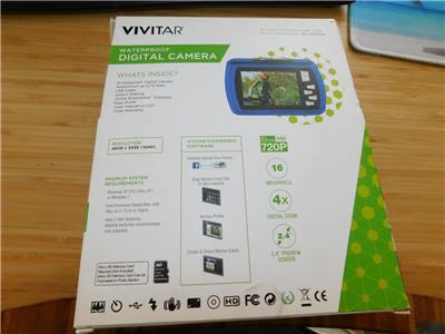 The Vivitar VS048 Waterproof Digital Camera is the perfect adventure companion. At 16MP, you can capture great images on the go and then preview them on the 2.4" LCD screen. The Vivitar VS048 is completely waterproof down to 10 ft. (3m) so feel free to jump into a pool or lake! Additional features: 720p HD video, 4X digital zoom, digital image stabilization, plus more!