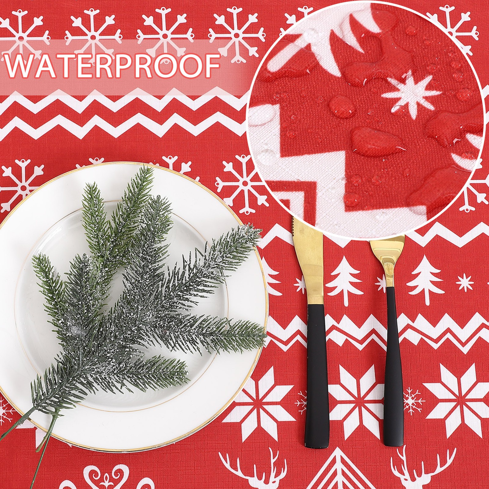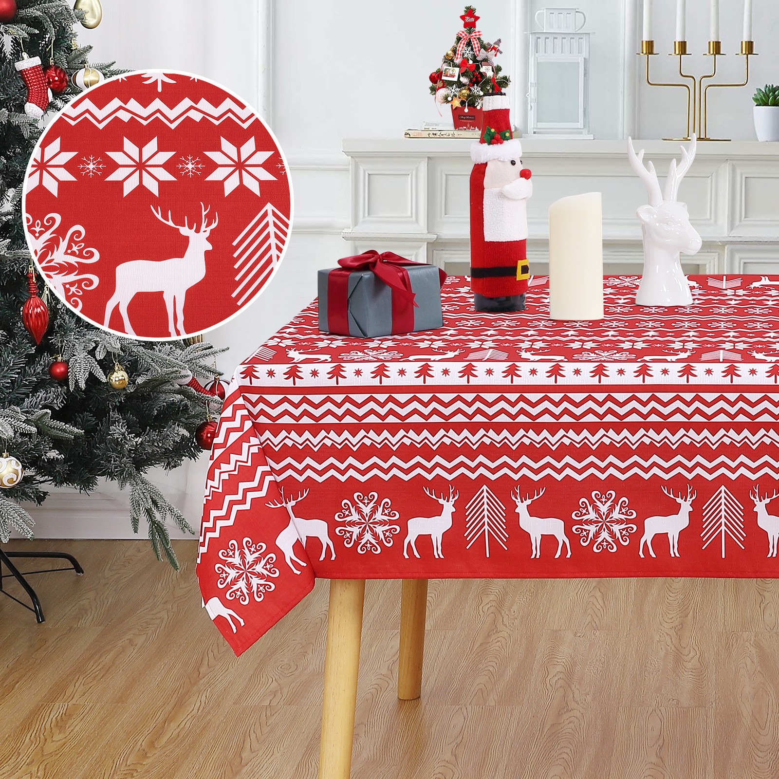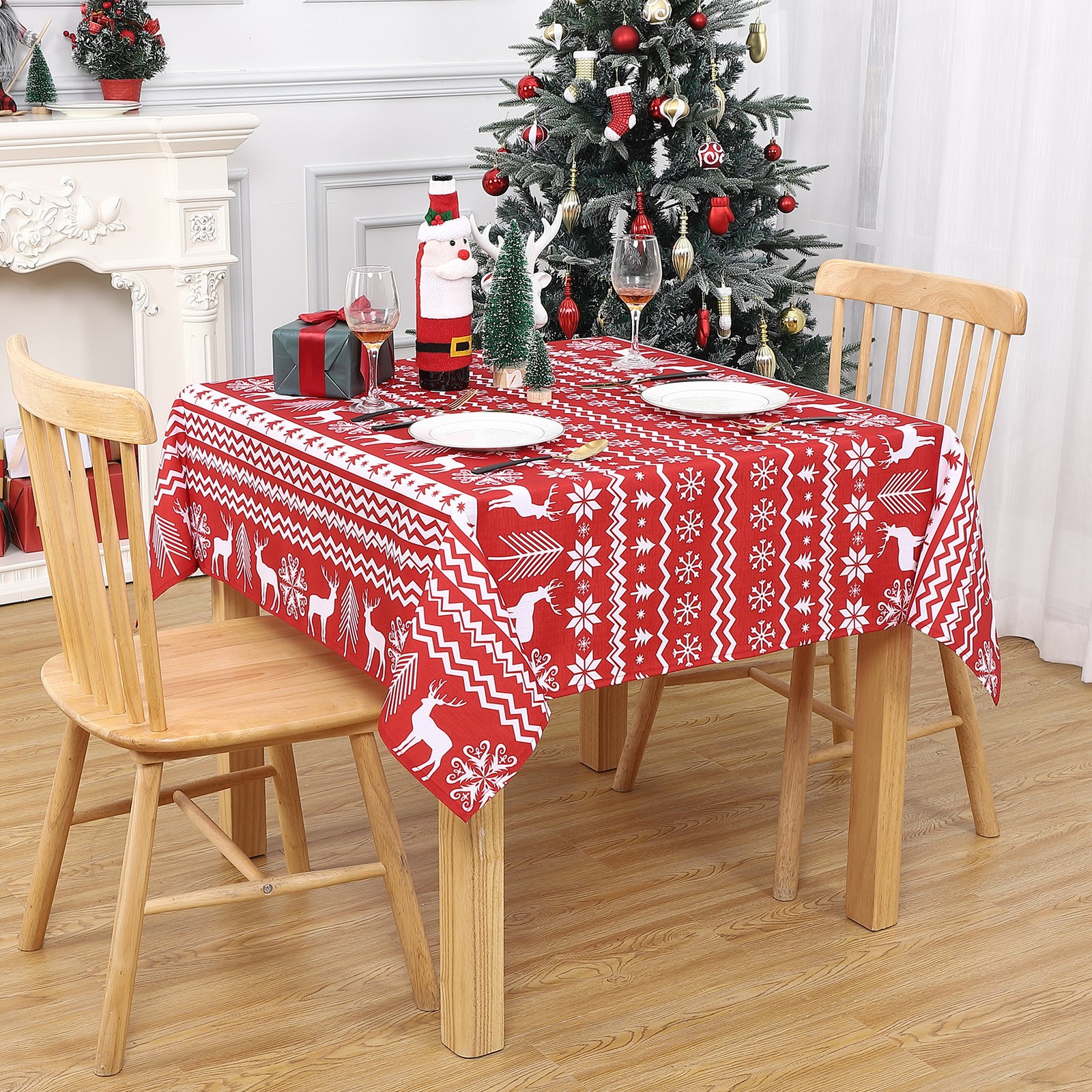 - Water-Resistant Table Cloth: Our Christmas Rectangle Tablecloth are crafted from high quality extremely soft and smooth 100 percent polyester material.This table cover could protection of your table and furniture because of its water resistant, wrinkle resistant and No leaks design.