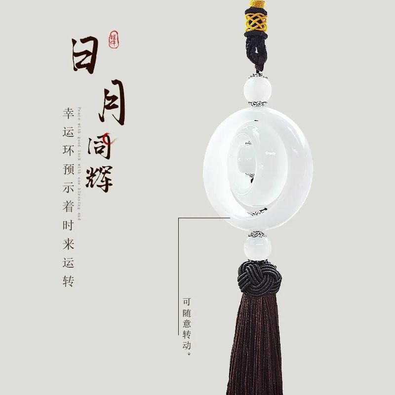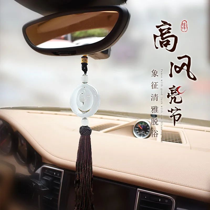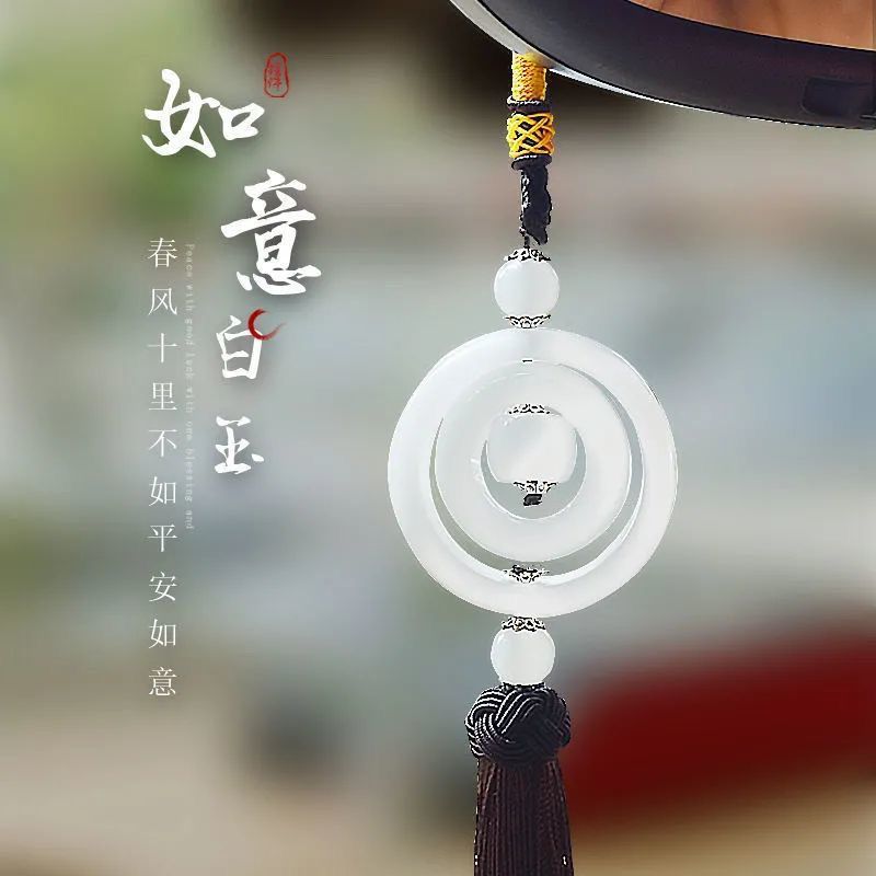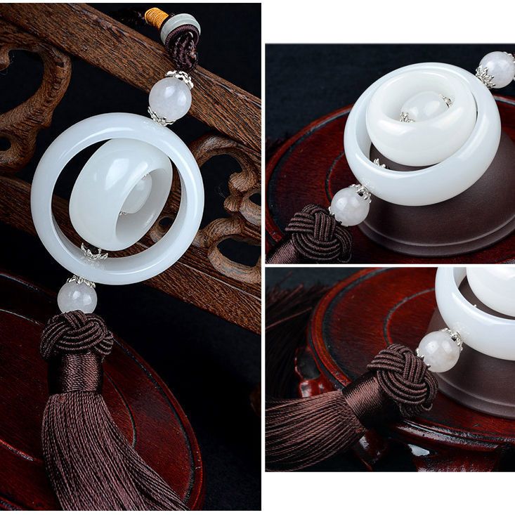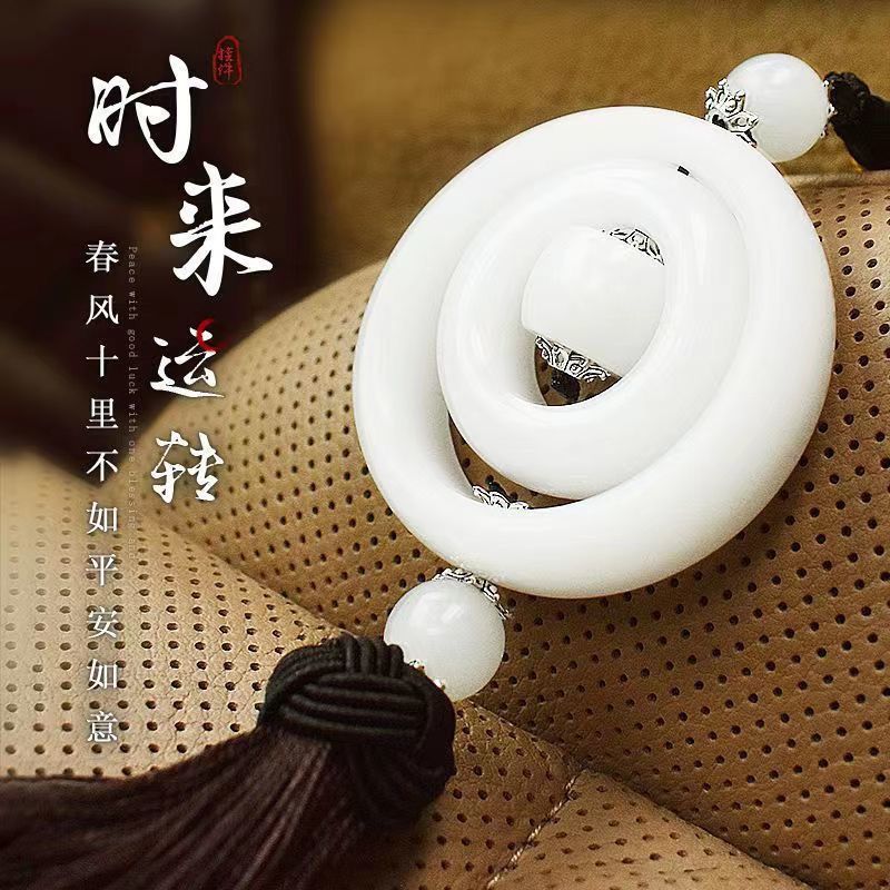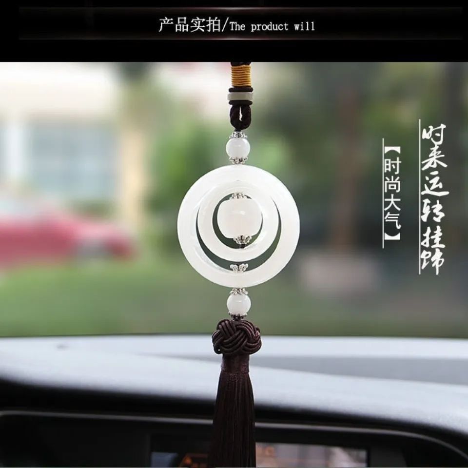 Jade Car Pendant Spinning Wheel Rearview Mirror Hanging Ornament Interior Decor