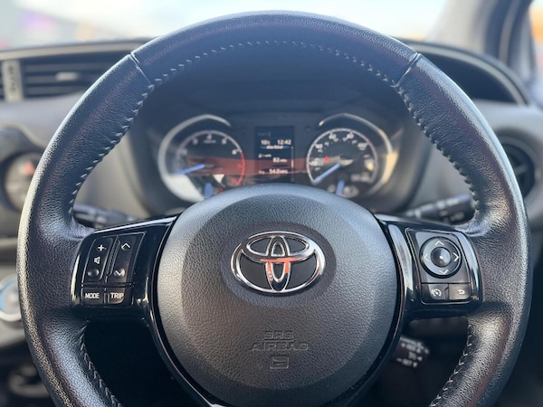 15in Alloy Wheels, 3-Spoke Leather Steering Wheel, ABS - Anti Lock Braking System, Active Headrests, Audio Switches on Steering Wheel, Auto Up and Down Function on Drivers Window, Black Lower Front Grille, Bluetooth Connectivity, Chrome Surrounds on Front Fog Lights, Cruise Control, DAB Digital Radio, Daytime Running Lights, Electric Power Steering - EPS, Emergency Brake-Light Signal - EBS - Hazard Type, Follow Me Home Headlights, Front Fog Lights, Front Passenger Airbag On-Off Switch, Front Power Windows, Front and Rear Cupholders, Glovebox, HAC - Hill Start Assist Control, High Mounted Rear Brake Light - LED, ISOFIX Fixing Points, Immobiliser, Leather Gear Shift, Manual Rear View Mirror, Projector Headlights, Rain Sensing Wipers, Rear Combination Lights, Rear Headrests x3, Remote Door Locking, Reversing Camera, Road Sign Assist, Seat Belt Reminder - Front and Rear, Seats - Drivers Height Adjustment, Seats - Sliding Front, Soft Touch Inner Door Garnish, Soft-Touch Instrument Panel, Space Saver Spare Wheel, Speakers x6, Supplemental Restraint System - SRS - Airbags - 7 Airbags, TFT Colour Display, TPMS - Tyre Pressure Monitoring System, Toyota Safety Sense, Toyota Touch 2, VSC - Vehicle Stability Control