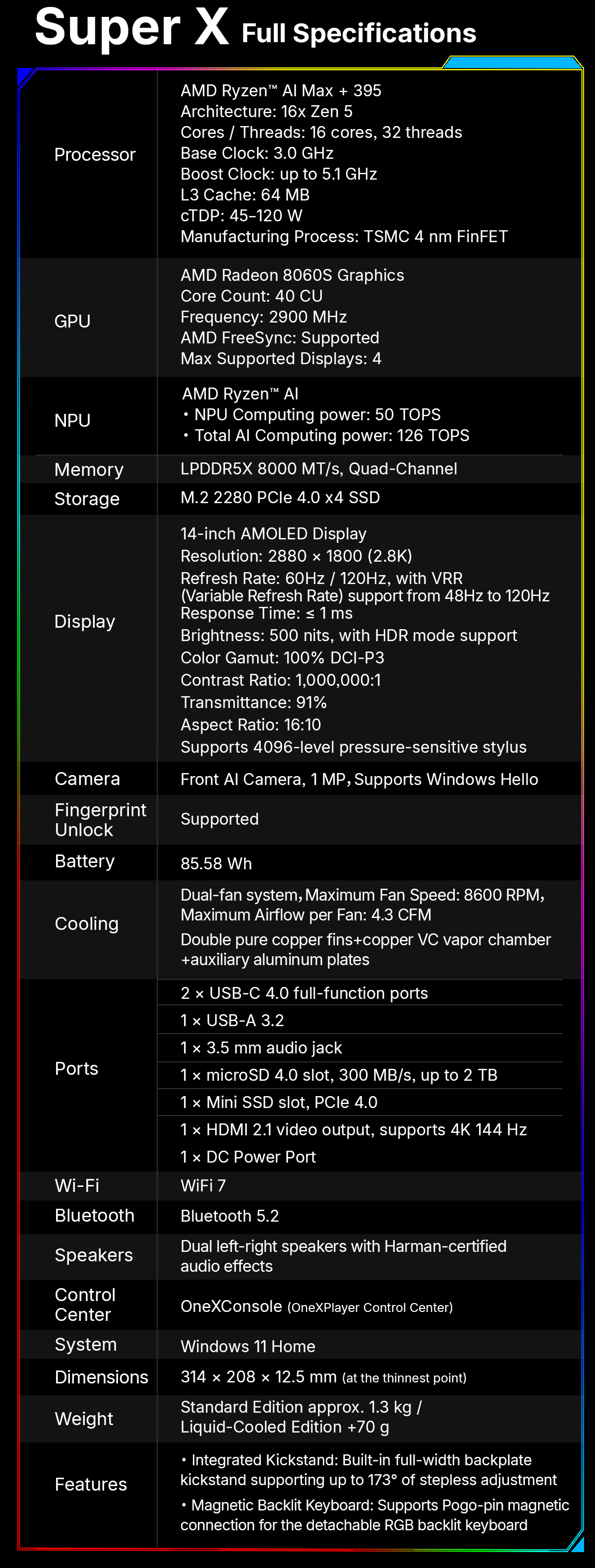 | Storage: | 1TB PCIe 4.0 NVMe SSD + Expandable via Mini SSD Slot & MicroSD Card |
