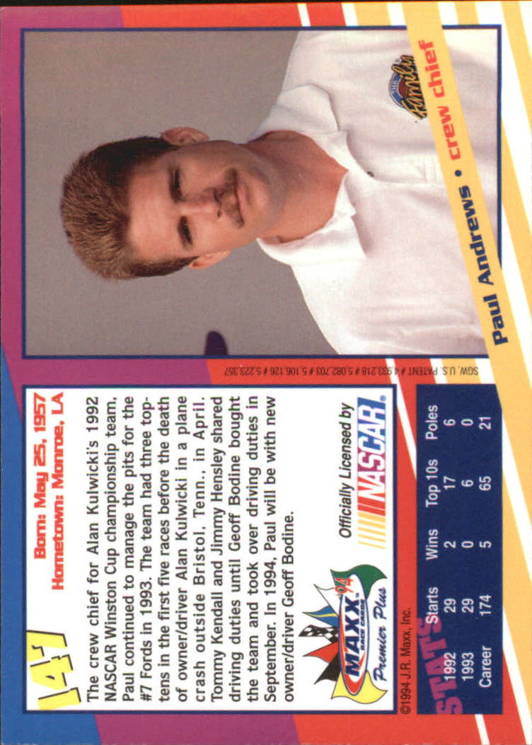 1994 Maxx Premier Plus #147 Paul Andrews - RAC