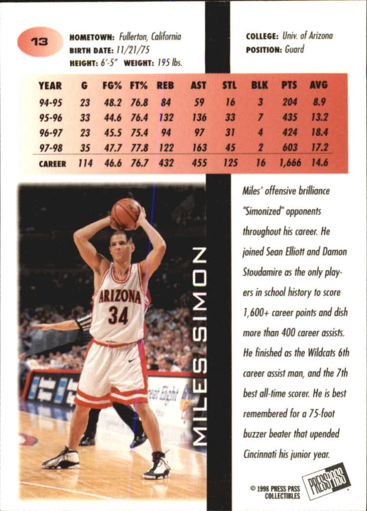 1998 Press Pass Blue #13 Miles Simon - BSK