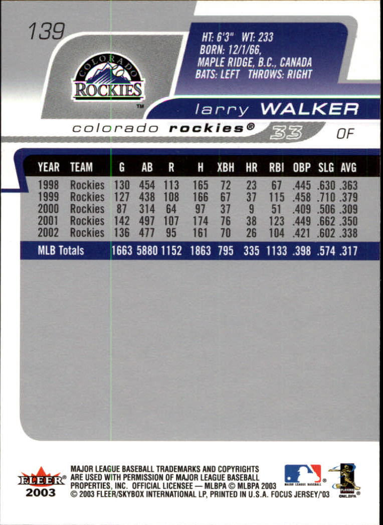 2003 Fleer Focus JE #139 Larry Walker - BB