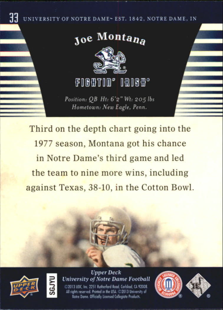 2013 Upper Deck Notre Dame #33 Joe Montana - FB