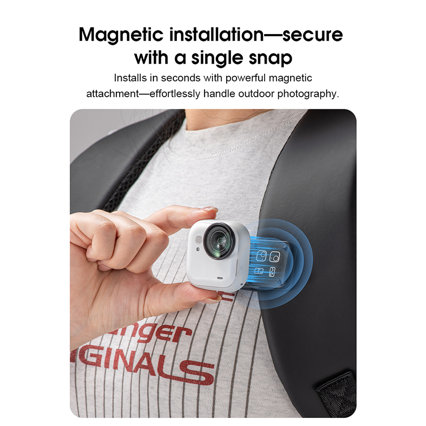 l Magnetic Attachment, Secure with One Click. Features a powerful magnetic structure that snaps securely onto your camera; the strong magnetism remains stable and won't detach during walking, sports, or light jogging