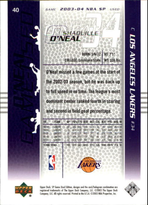2003-04 SP Game Used #40 Shaquille O'Neal - BSK