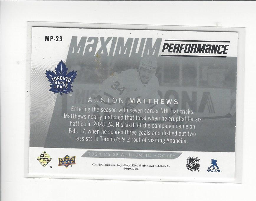 2024-25 SP Authentic Maximum Performance #MP23 Auston Matthews Maple Leafs