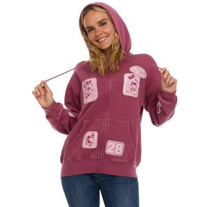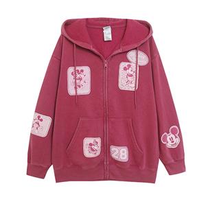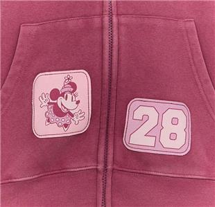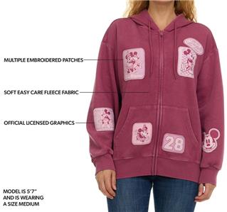 This hooded jacket is size large and made by Disney. It is made with 59% cotton and 41% polyester and machine washable. It measures 22" across the bust and is about 26" in length from the seam at the back of the neck. It is new with tags, might have some wrinkling with shipping. Cute and comfy.