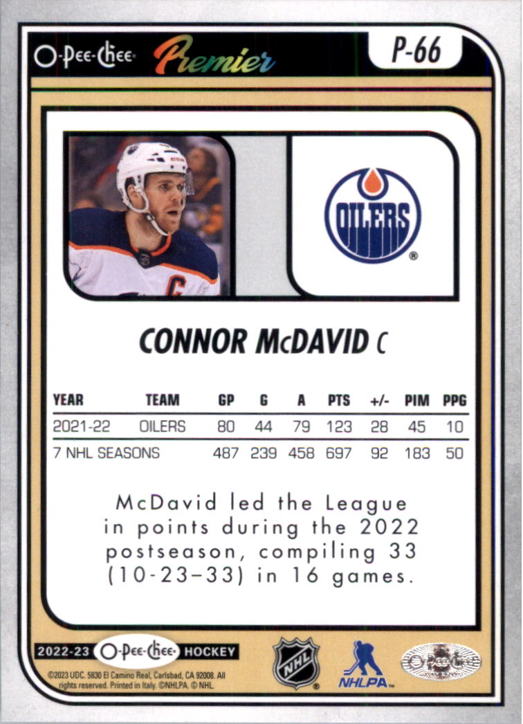 2022-23 O-Pee-Chee OPC Premier #P66 Connor McDavid - HKY