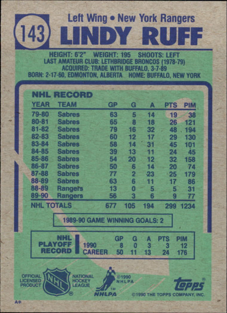 1990-91 Topps #143 Lindy Ruff - HKY