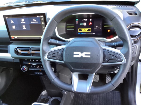 Dacia Spring 27kWh Extreme 65 48kW 5dr Auto,The Dacia Spring 27kWh Extreme 65 48kW 5-door Auto (2024) is a compact all-electric hatchback designed for affordable urban and suburban driving. Its an entry-level EV with practical packaging, low running costs, and simple, functional equipment perfect for everyday use. Electric PerformanceBattery: 27 kWh (usable 26.8 kWh lithium-ion) Electric Range: 140 miles WLTP (225 km) Power: 65 PS / 48 kW electric motor 0-62 mph: 13.7 seconds Top Speed: 78 mph Transmission: Single-speed automatic (EV drivetrain) Charging: AC slow home charging (2.3 kW) Faster AC charging (7.4 kW) DC fast charging up to 30 kW (20-80 % in 45 min) Equipment & FeaturesInterior & ComfortFabric / TEP upholstery and practical interior trim Height-adjustable steering wheel with soft-feel grip Front 12 V socket Safety & Security6 airbags (front, side and curtain) ESP with Hill Start Assist & side impact protection Tyre pressure monitoring Child locks, seatbelt warnings & alarm/immobiliser Remote central locking Exterior15 Alloy wheels Body-colour door handles and modern front/rear styling elements PracticalitySeats: 4 adults comfortable for city traffic Boot space: 308 L with seats up, 1004 L with seats down Compact dimensions: Easy to park and manoeuvre (length 3701 mm) Warranty3-year / 60,000 mile manufacturer warranty as standard covering mechanical and electrical faults. Battery warranty: separate long-term coverage (commonly 8 years / 100,000 miles with minimum capacity guarantee) on the high-voltage battery check official documentation for exact terms in the UK..Front & Rear sensors & Camera.