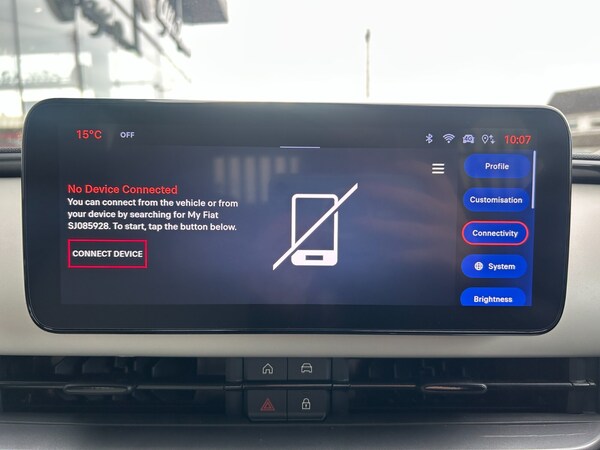 Fiat 600 1.2 Hybrid 48V La Prima 5dr eDCT-6..360 degree parking sensors with 180 degree rear view camera, 7'' TFT digital cluster, Autonomous driving level 2: Adaptive cruise control with stop & go and lane centering, Blind spot detection, Bluetooth connectivity, BSRF connectivity box, Connected services, Drowsy driver detection, Emergency E-call assist, Engine emission level default, GSR II step 1, Hands free power liftgate, Intelligent speed assist, Lane keeping assistant (LKA), Odometer, Power assist steering, Rain and dusk sensors, Semi-automatic parking with Visiopark 1 system, Traffic sign recognition, Wireless apple car play/android Auto, Wireless charging pad for smartphones, Without drive mode selector, L2-AGM 12V battery, 1st Row USB type-A and USB type-C, 2nd Row USB type-C, 6 speaker audio system, Radio, Uconnect infotainment 10.25'' touchscreen with integrated navigation system and DAB, All power windows express Up/Down, Auto dimming frameless rear view mirror, Automatic headlights, Automatic high/low beam, Body coloured door handles, Chrome day light openings, Chromed exhaust tip, Electric adjustable/heated/folding door mirrors, Exterior chrome accents, Front and rear Chromed 600 logo, Gloss black finish B pillar, Gloss black shark fin antenna, Glossy black door mirrors, Heated windscreen wiper blade area, LED 3rd brake light, LED daytime running lights, LED Fog lamps with cornering function, LED front signature lighting, LED front turn indicators and position lights, LED rear lights, LED rear signature lighting, LED reflector headlamps, Matt black side skirts with 600 chromed logo, Privacy glass, Puddle lights, Rear bumper embossed 600 logo, Rear roof spoiler, Rear side wing doors, Rear wiper, 2 Spoke synthetic leather steering wheel with audio control, 3 rear headrests, 3 seat bench in 2nd row, 6 way manually adjustable front passenger seat, 6 way power adjustable driver seat with lumbar support and massage function, Adjustable trunk floor, Automatic climate control, Auxilliary 12V power socket, Cargo flex fit, Chrome interior door handles, Dark metachrome dashboard ring, English handbook, Front centre armrest, Front headrests, Front passenger grab handle, Front seatback pockets, Heated front seats, ISOFIX attachment on front passenger and rear passenger seats, Matt Ivory painted dashboard fascia, Metachrome central compartment bezel, Monogram Synthetic leather upholstery, Paddle shifts, Partial body cover for shipment, Predisposal for