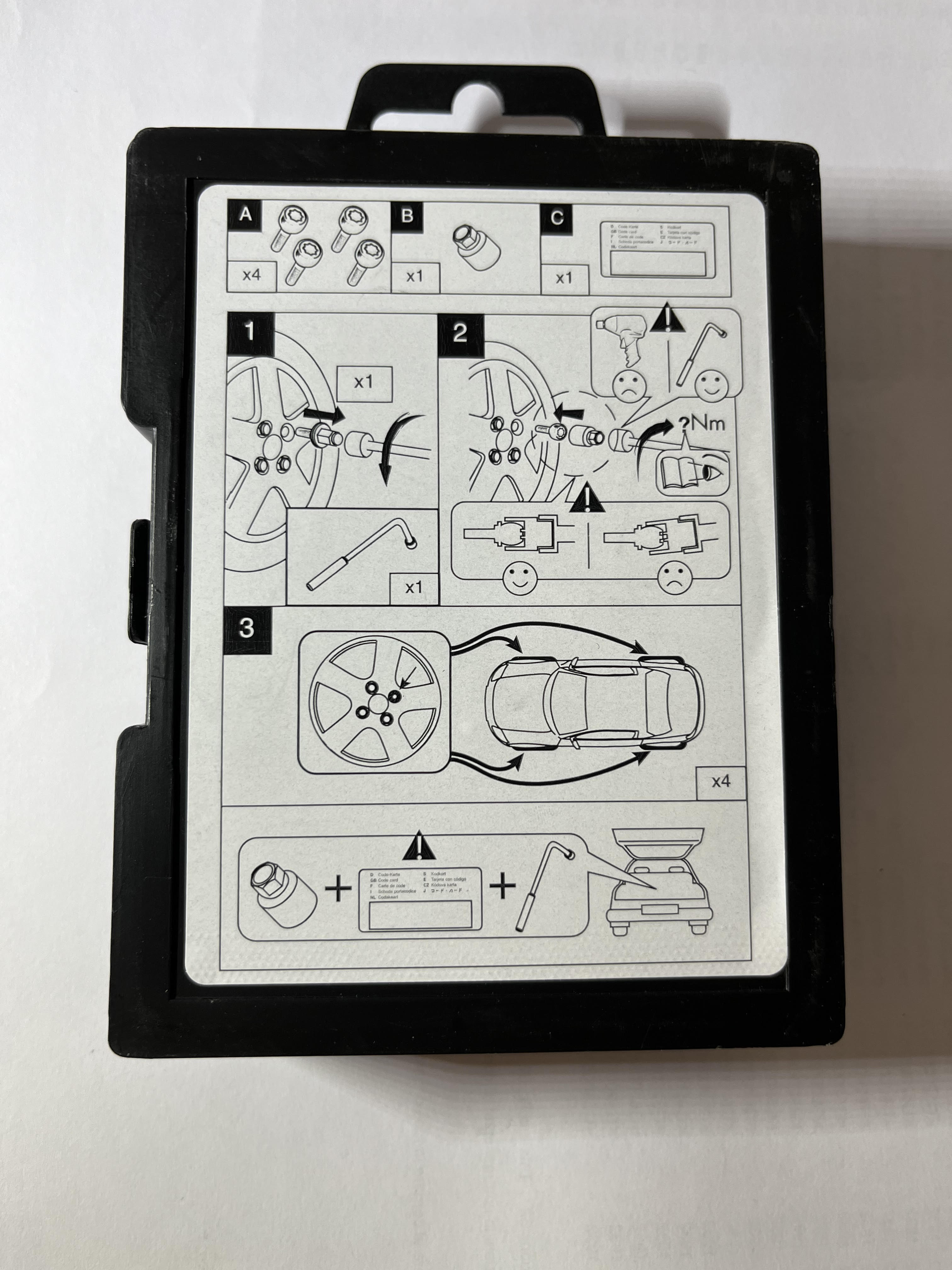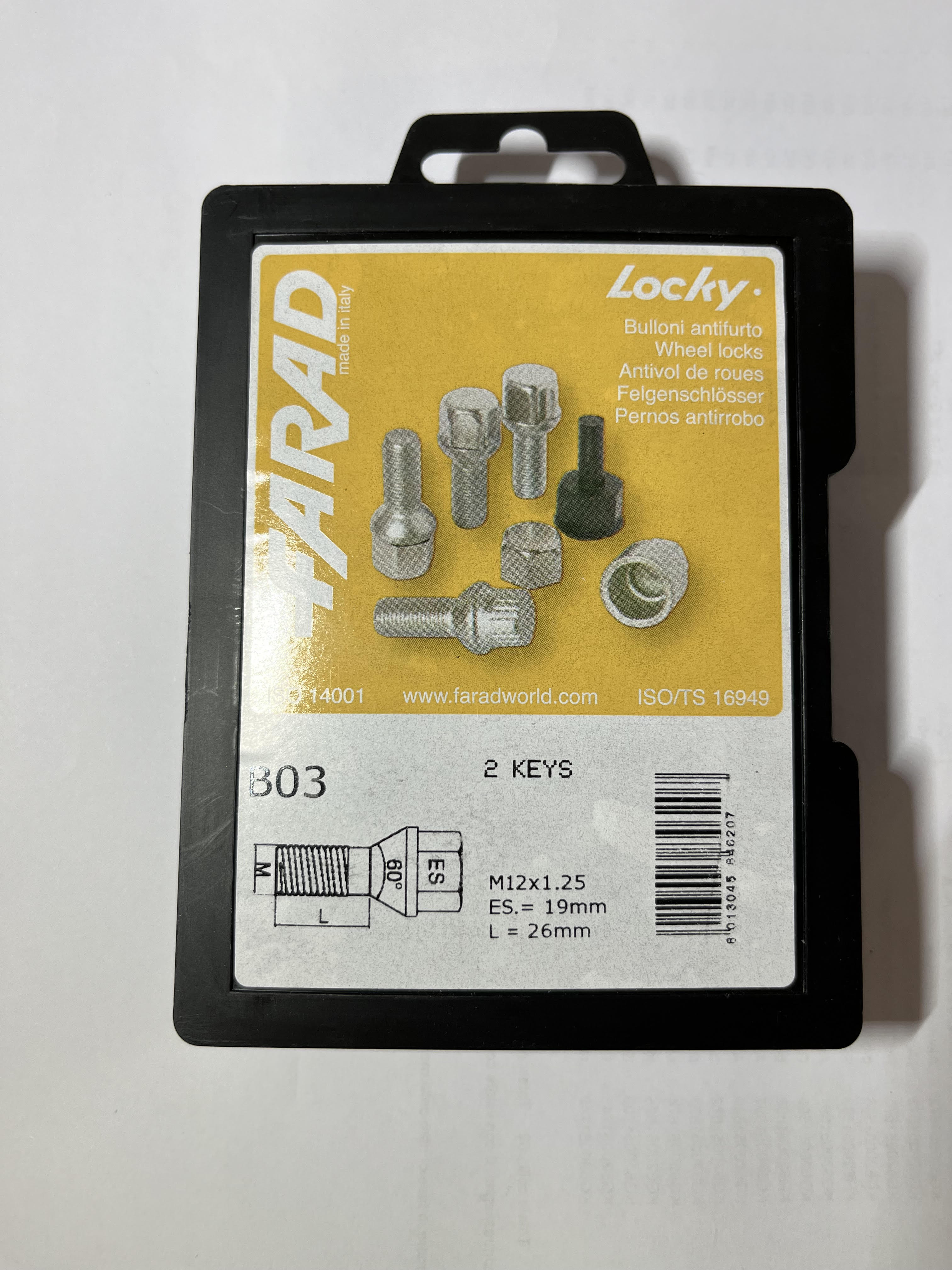 Das Kit enthält 4 Diebstahlsicherungsschrauben oder -muttern und 2 LOCKY-Schlüssel.