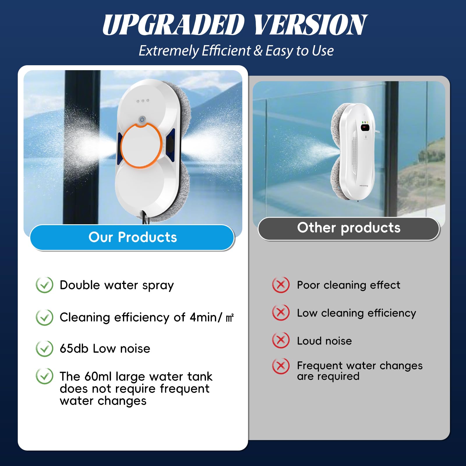 🎛️【Telecomando e funzionamento silenzioso – Comfort e praticità】 Grazie al telecomando wireless, puoi avviare, fermare e personalizzare il tuo robot lavavetri con facilità. Con un livello sonoro di soli 65 dB, funziona in modo discreto senza disturbare la tranquillità domestica. Inclusi 8 panni in microfibra per una finitura brillante e senza striature.