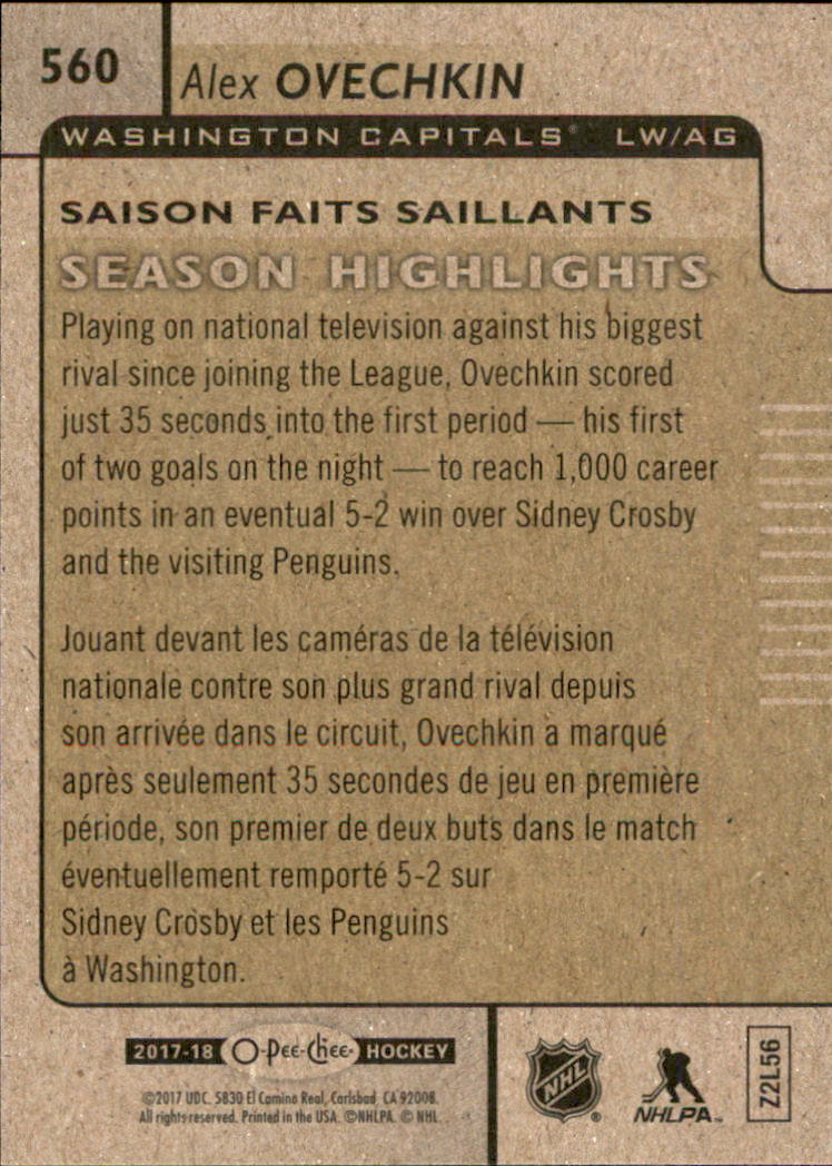 2017-18 O-Pee-Chee #560 Alexander Ovechkin SH - HKY