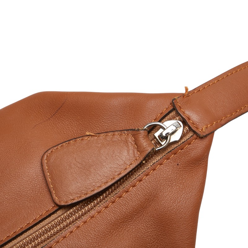 | Condition Details | Outer⇒Rubbed・Stain Side⇒Rubbed・Stain Bottom surface: Corner scuffs, small stain Handle: Stain, broken thread, cracked edge Metal⇒Metal stripping・Rubbed Opening and closing: Zipper handle has broken thread, cracked edge, and rubbed |