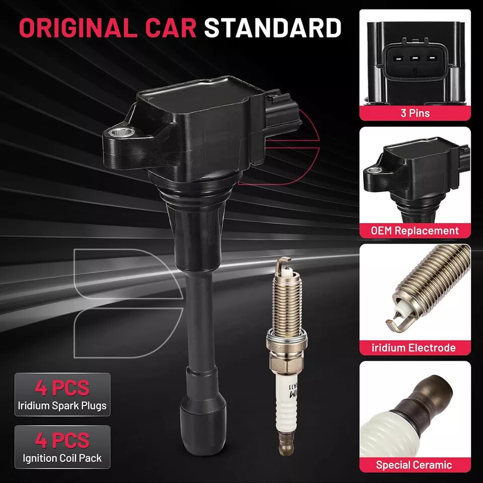 4pcs Ignition Coils Pack For Nissan Altima Sentra Rogue X-Trail Tiida 2.5L UF549