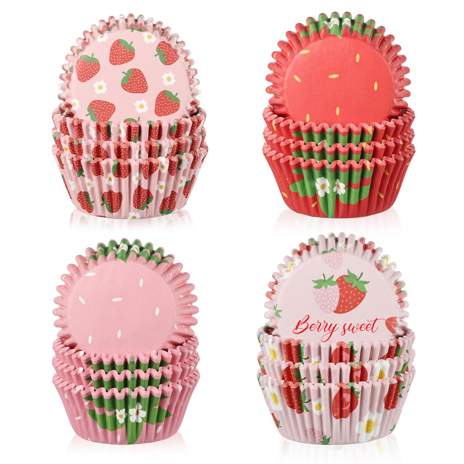 QUANTITY:You will receive 600 pieces strawberry cupcake liners in 4 different patterns,suitable for holding cakes, cookies, muffins, candies, chocolates, cakes, nuts, pastry and other snacks