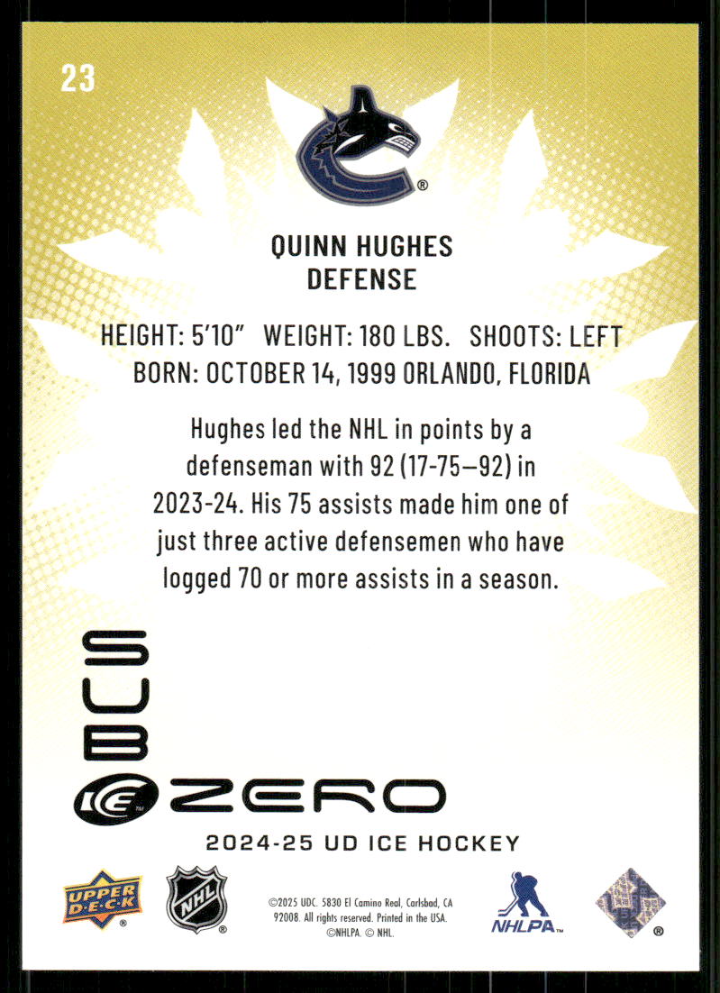 2024-25 Upper Deck Ice Sub Zero Stars #23 Quinn Hughes - HKY