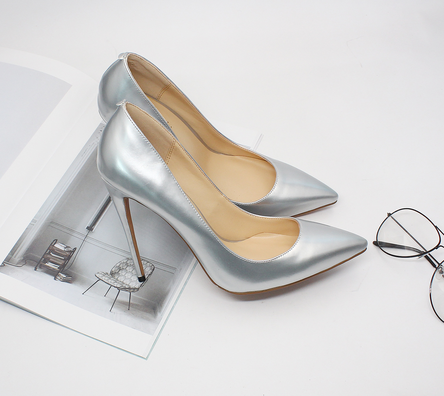 Womens New Pointed Toes Fashion Thin Heels High Heels Shallow Mouth Plus Size