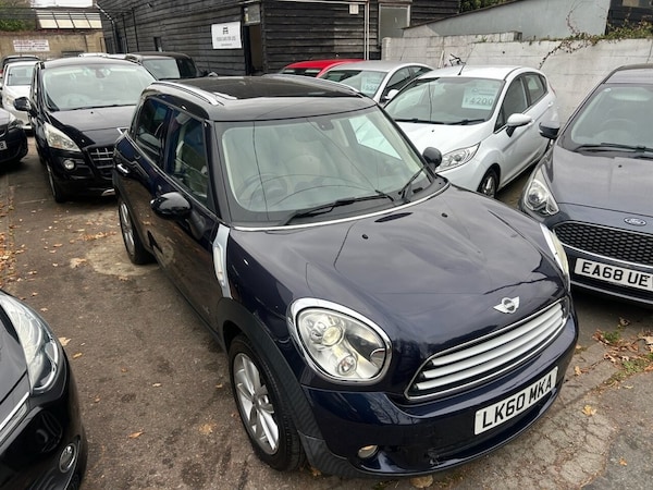 Here at Essex cars for less, we are pleased to offer this 2010 Mini Countryman Cooper 1.6 Diesel, finished in blue, and having just covered just 42K miles from new! Comes with all the extras youd expect from Mini, including full electrics pack, air conditioning, parking sensors, twin sunroofs, white leather interior 6 speed gearbox, 4WD, alloy wheels ect. Very spacious interior that fits 4 very comfortably, and thanks to the 1.6 litre Diesel engine, offers great value, fun motoring! Test drives and P/X welcome. all our vehicles come with minimum 6 Months MOT, fully valeted and with minimum 3 months warranty (subject to £99.00 administration fee). extended 6, 12, and 24 month warranties are available, please speak to one of our sales team for more information. Please note, every effort has been made to ensure the accuracy of the above information, but errors may occur. Please check with a salesperson..16in 5 star Alloy Wheels, 2 Part mini centre rail, 2 Rear Seats, 2Spoke Steering Wheel, 3 Point Seatbelts on all Seats, 3 Rear Seats, 6 Speakers, Air Conditioning, Alloy Wheels - Black, Alloy Wheels - Silver, Alloy Wheels painted White, Basic Bluetooth function with USB Audio, Bike rack preparation, Black roof & mirror caps, Body colour door mirrors, Body colour roof, Colour line- Carbon Black, Colour line- Polar Beige, Interior world - Dark Tobacco, Interior world- Carbon Black, Interior world- Polar Beige, MINI centre rail, MINI mobility System, Model designation deletion, No smoker Package, Orange indicator Lights, Radiator grille in Silver, Telephone USB Audio interface, Voice Control System when with Bluetooth telephone preparation, White roof & mirror caps, 17in 5 Star double Spoke Alloy Wheels, Adaptive Headlights, Auto dimming Interior mirror, Automatic Air Conditioning, Bluetooth telephone preparation with USB Audio interface, Colour Line - Polar Beige, Cosmic Blue, Dashboard Trim- Piano Black, Electric Panoramic Glass Sunroof, Electric folding door mirrors, Flat load boot floor, Front Foglights, Front Sports Seats, Heated Front Seats, Leather- Gravity- Polar Beige, Rain sensor with Auto Headlights activation, RunFlat Tyres, SatNav, Storage Compartment Pack- Countryman, White indicator Lights