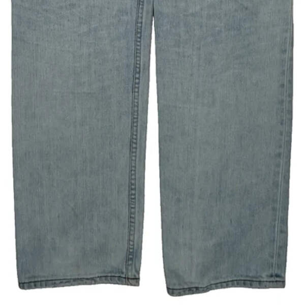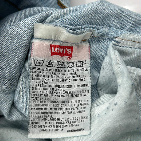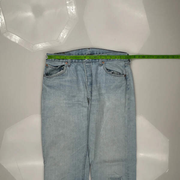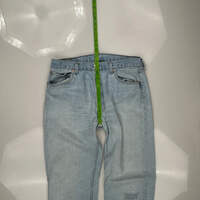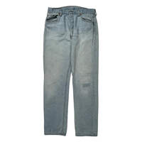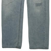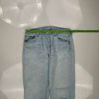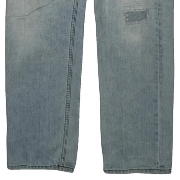 Light Wash Jeans With Minor Patch On The Front Leg.