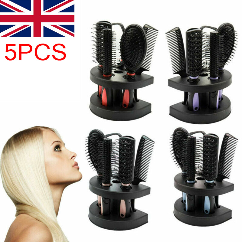 5x Professional Salon Hairbrush Womens Ladies Makeup Hand Hair Brush Comb Set UK