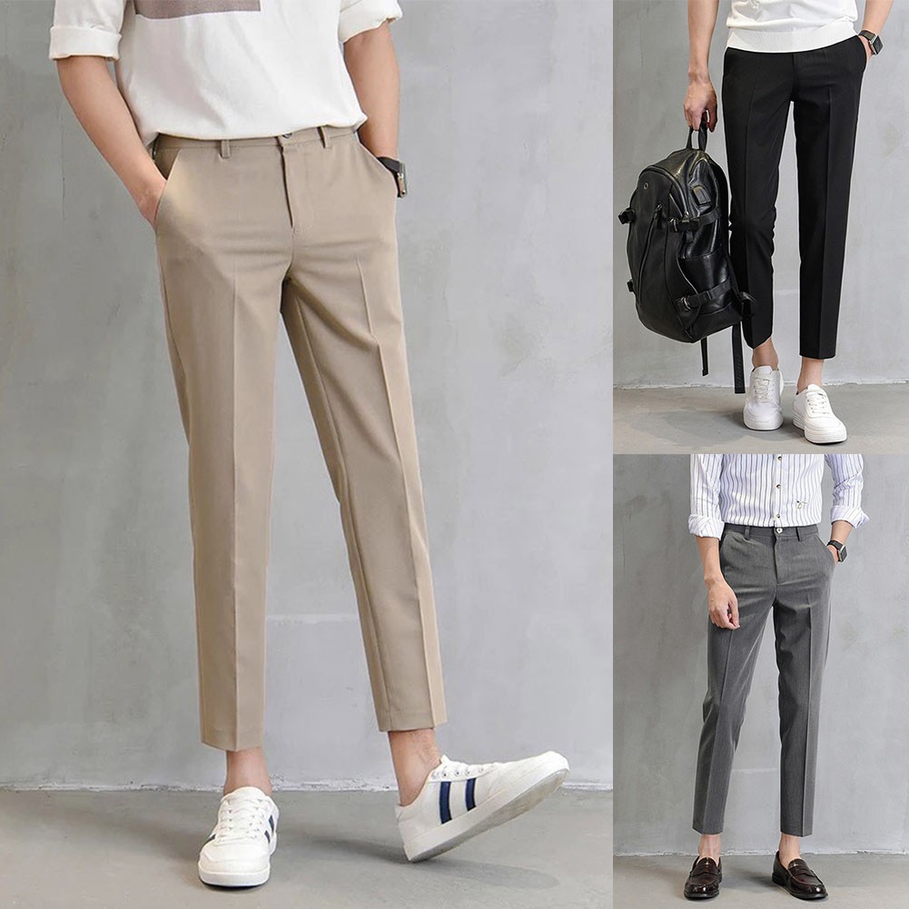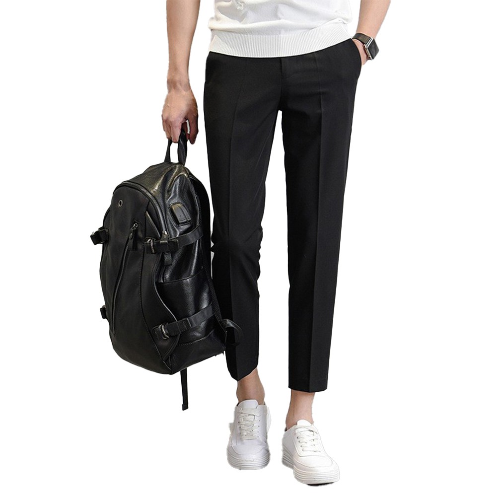 Pantalon de costume décontracté coupe droite pour homme longueur cheville pant