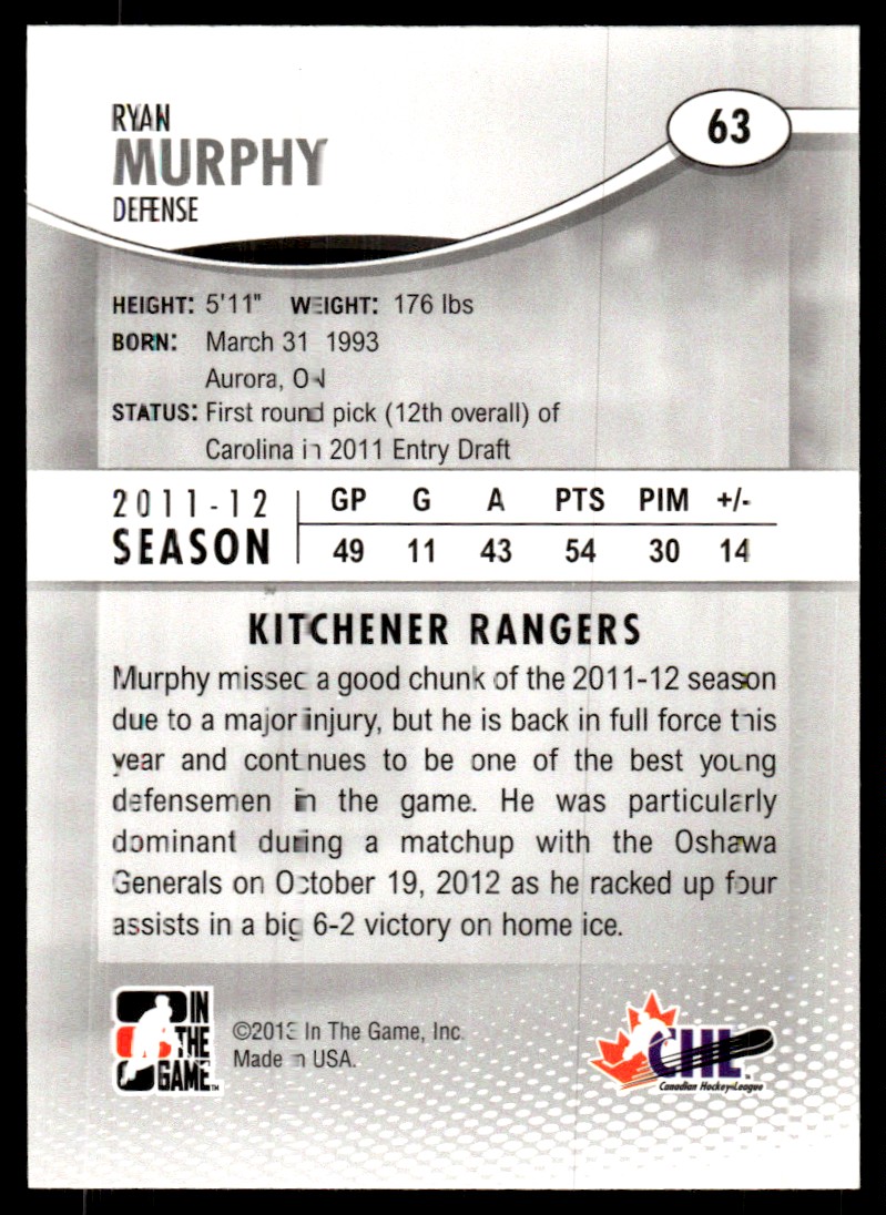 | 2012-13 In The Game Heroes and Prospects Ryan Murphy #63 |