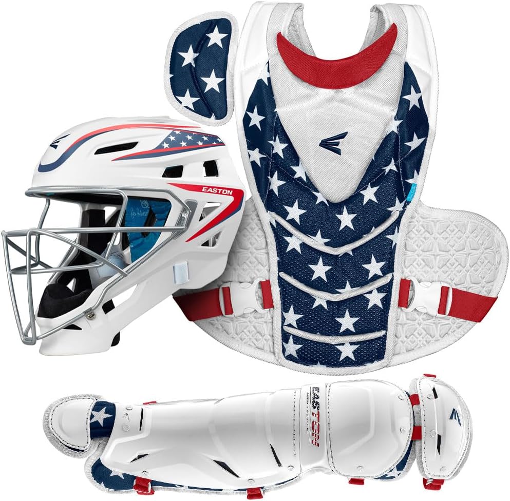 New Easton JEN SCHRO The Very Best Fastpitch Softball Catcher's Set Medium S&S THE VERY BEST BOX SET FROM EASTON x JEN SCHRO | Revolutionary gear made specifically to inspire and protect fastpitch catchers (Small Ages 12 & Under - Medium Ages 12-15 - Large Ages 15+) THE VERY BEST CATCHER'S HELMET | Engineered with new streamlined durable ABS plastic shell plus black matte steel cage as well as Clear Dri and Aegis Special lining that helps fight off sweat THE VERY BEST CHEST PROTECTOR | Form fit for the female athlete, with easy to adjust fit system and patented silicone grip abs THE VERY BEST LEG GUARDS | Feature neoprene knee strap for improved comfort as well as inner knee padding designed for throwing from the knees NOCSAE APPROVED | Meets NOCSAE Commotio Cordis standard Medium: Helmet Small 6 1/2" - 7 1/8" Chest Protector: 16" Leg Guards: 14"