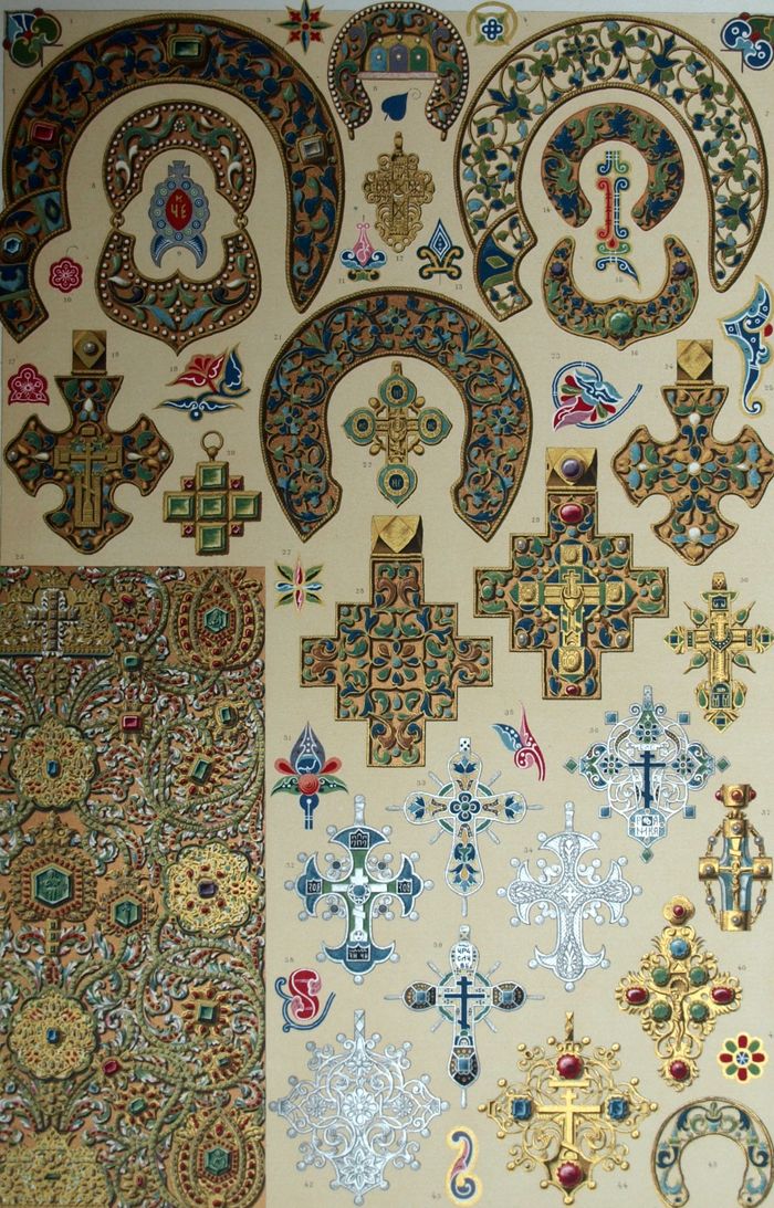 RUSSIAN Polychrome ornament Superb decorative chromolithograph, from the end of the 19th century. Sheet size: ~ 41 x 29 cm Out of text print, authentic print, 19th century. Slight marginal foxing