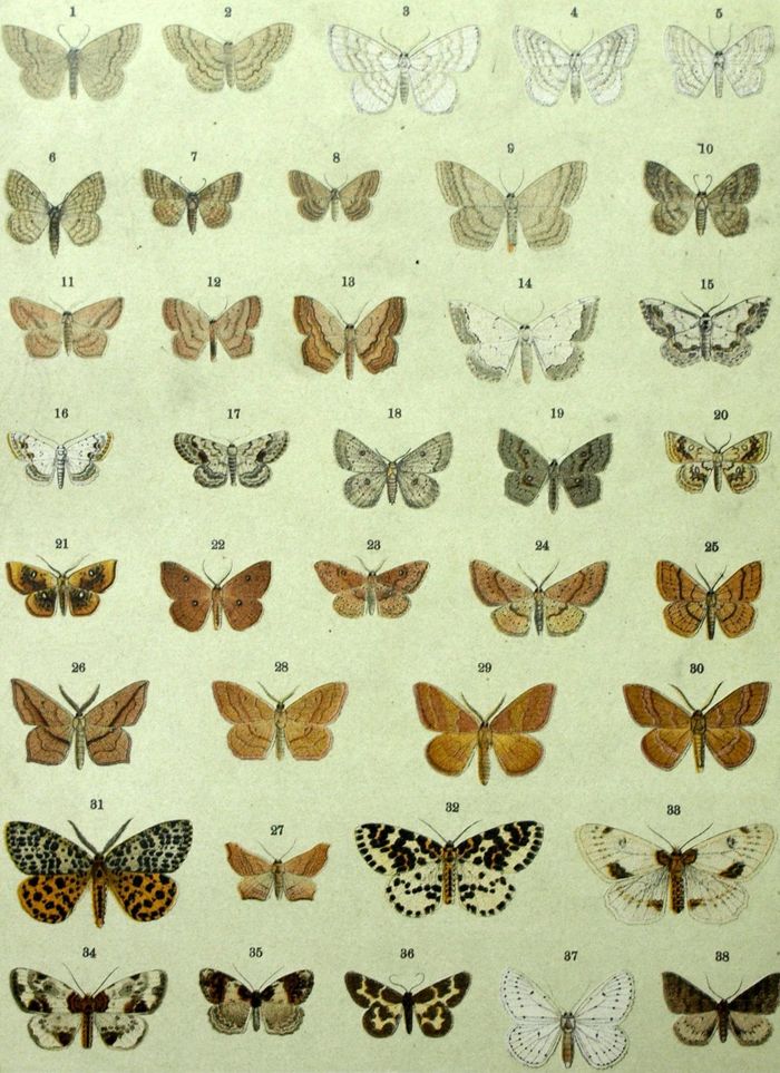 Heterocera (Geometrae) Authentic chromolithograph from the 19th century. Beautiful off-text print on thick paper. Lithograph by Anst. Reichert Whaler in Stuttgart. Sheet size: ~ 30 x 22 cm Some foxing.