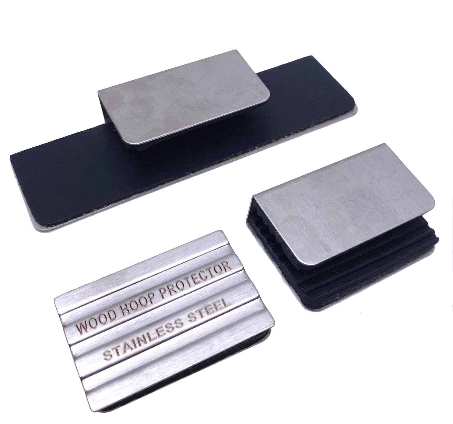 Description:- Durable Rubber + Stainless Steel- Set of 3 Bass drum Hoop Protector- Protects Hoop From Pedal Clamp- Fits All Hoop Thicknesses- Easy to install and works